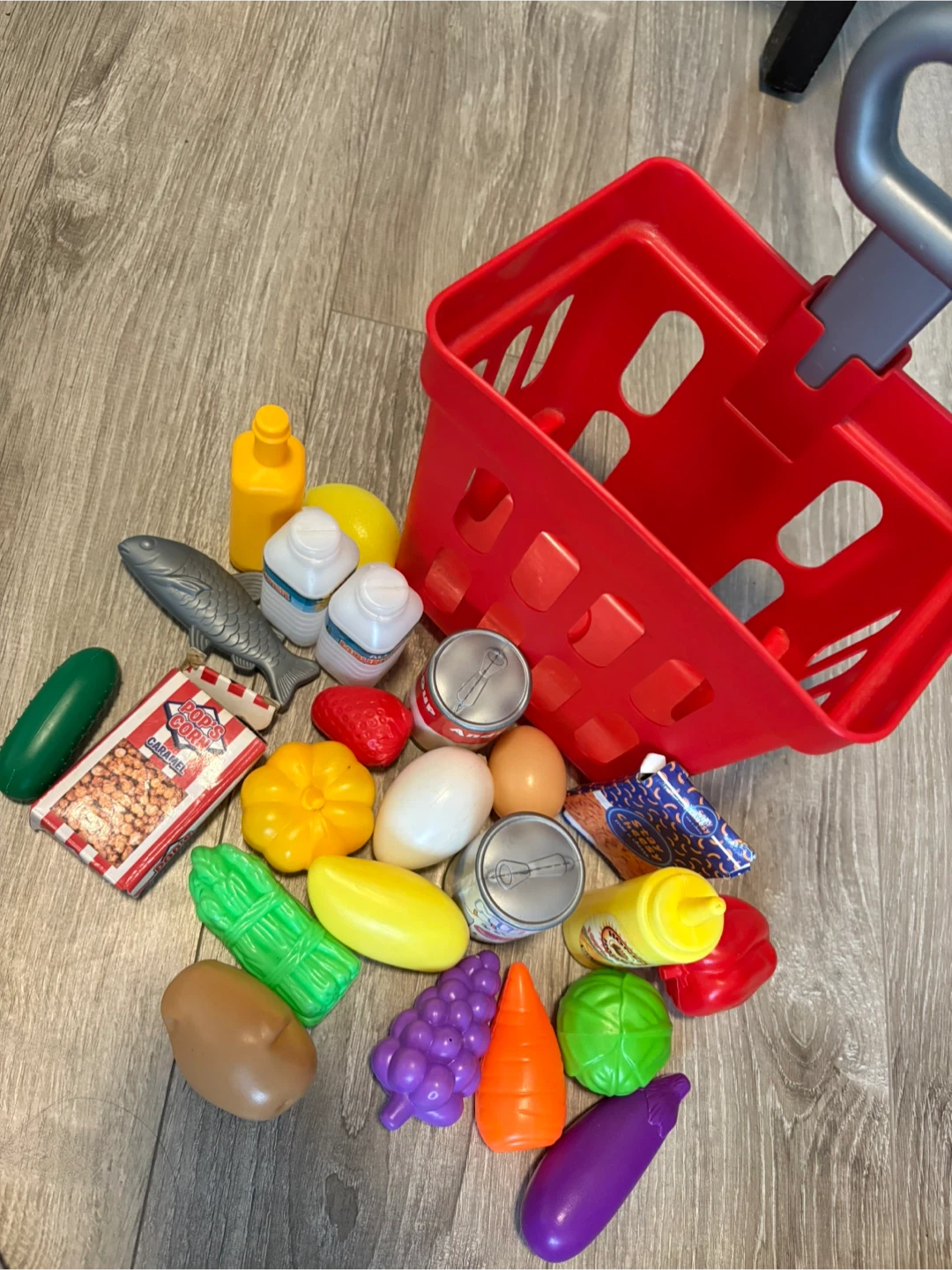 A fun set of pretend play food and a shopping cart for your little one! Includes a variety of fruits, vegetables, and packaged goods to encourage imaginative play. Perfect for kids who love to mimic grocery shopping and cooking!