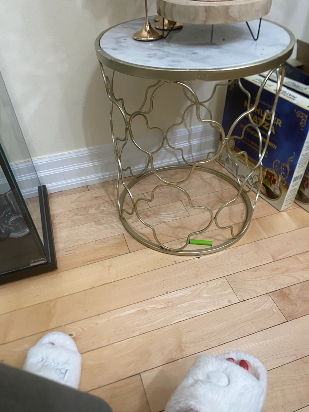 Gold Metal Side Table with Marble Top