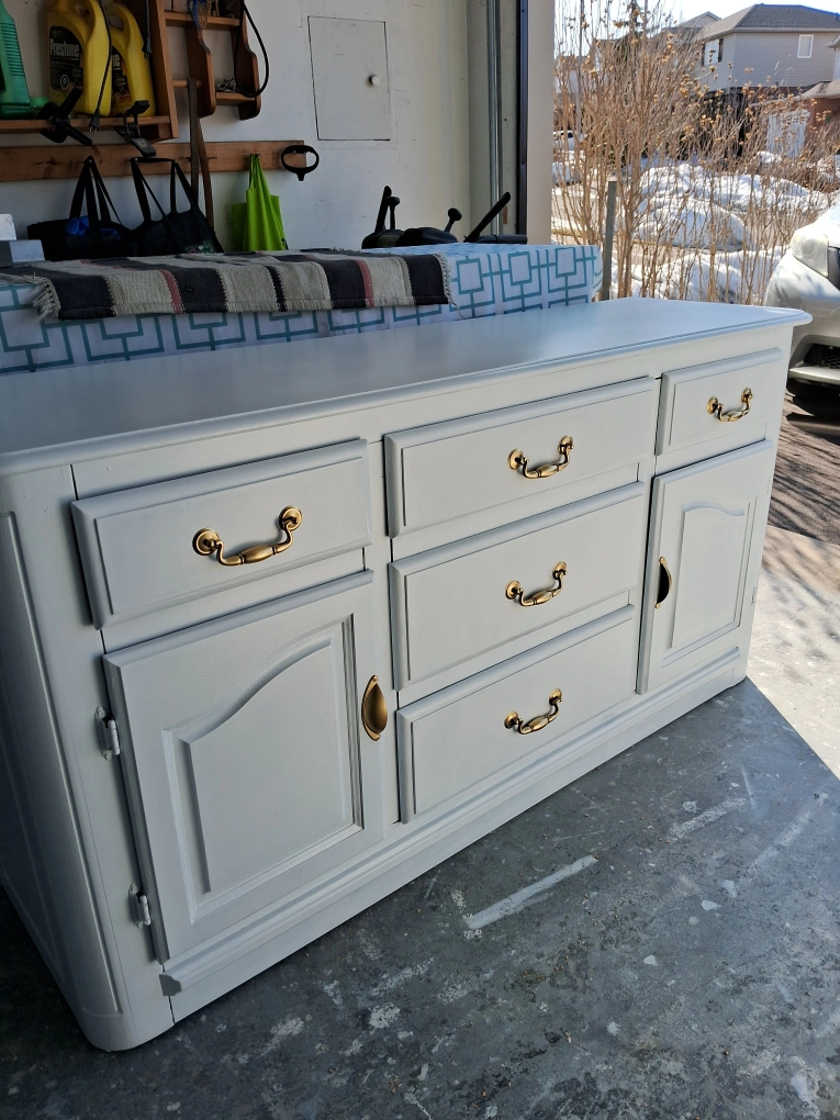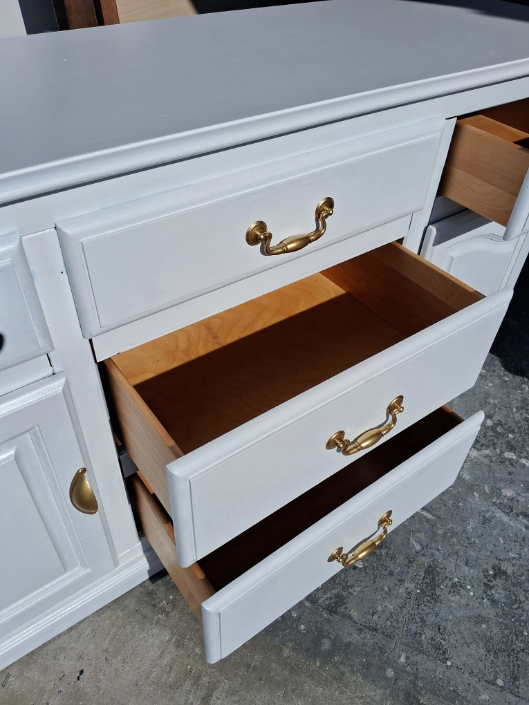 White painted sideboard with gold hardware