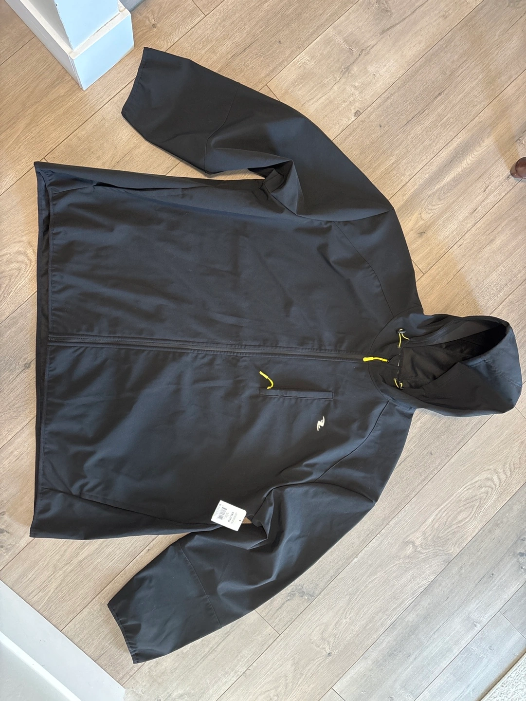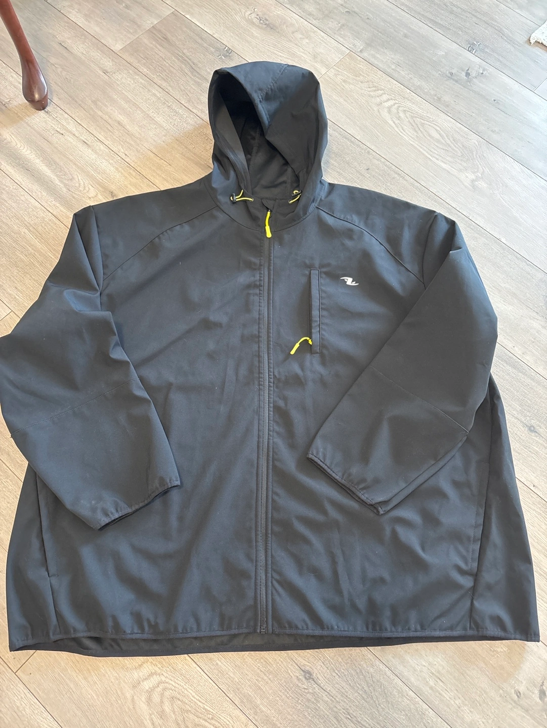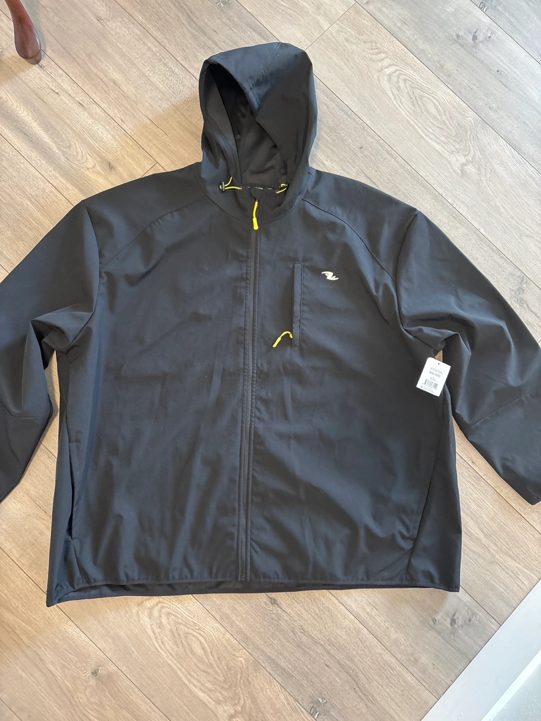 Men's black softshell jacket. Features a full zip closure, hood, and pockets. Great for layering. Size 3XL. New with tags.
