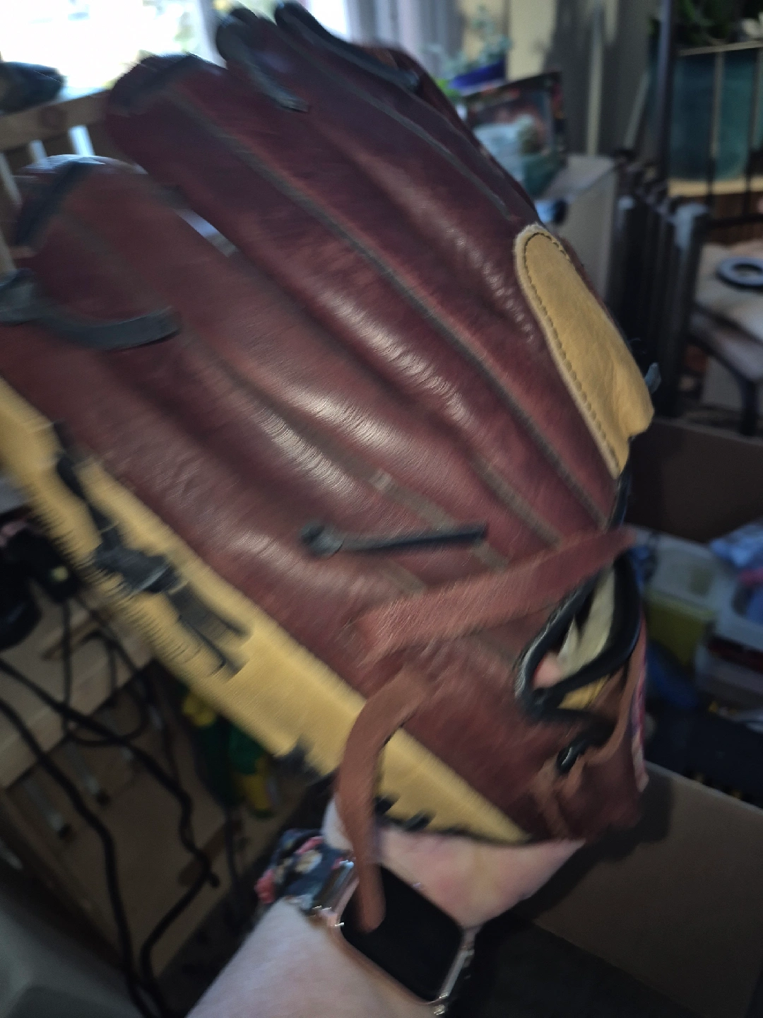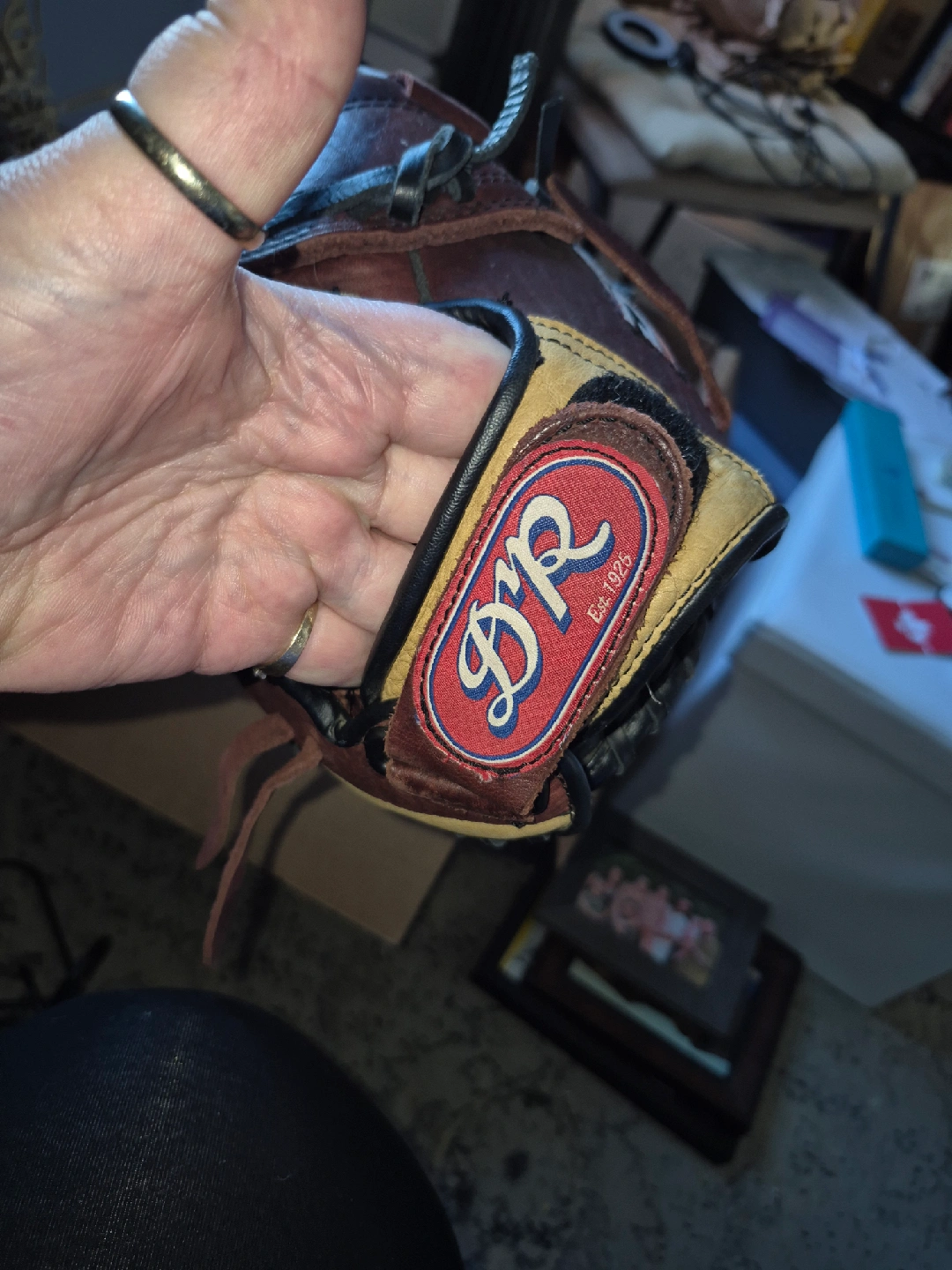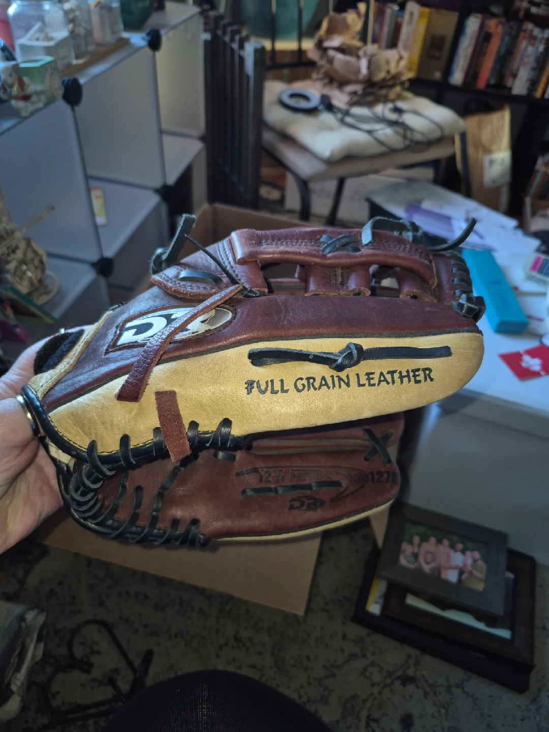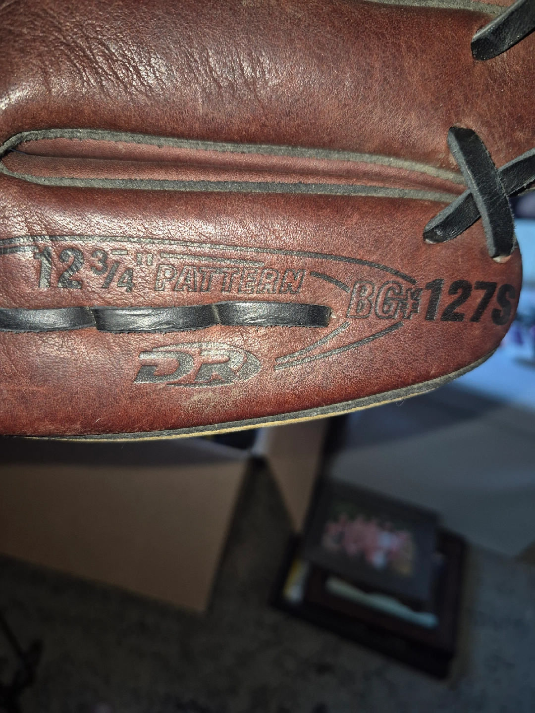 15Selling a DnR baseball glove, model BGM127S. It's a 12.75" pattern glove made with full grain leather. It shows some signs of use, but is still in good condition for playing ball!