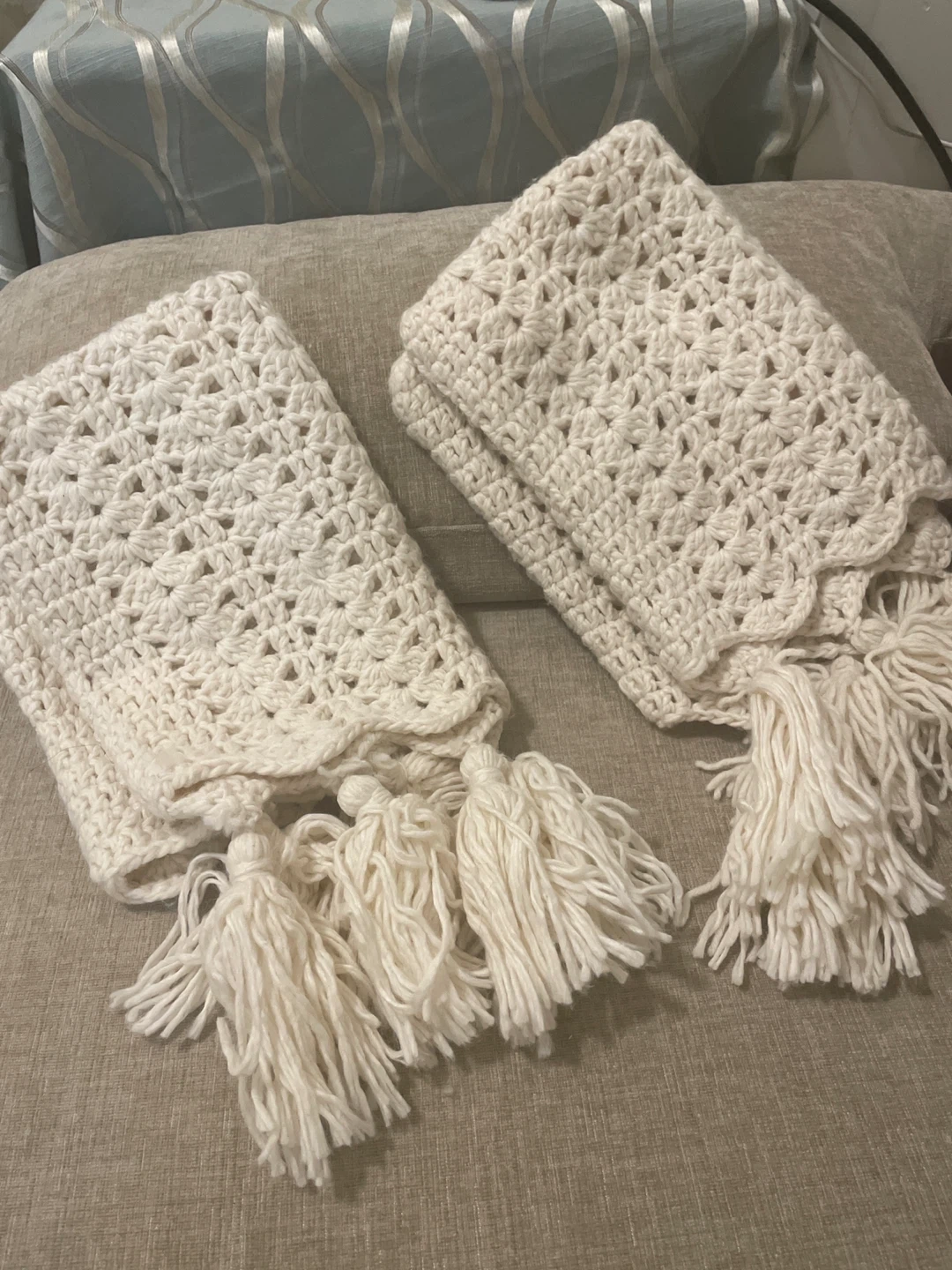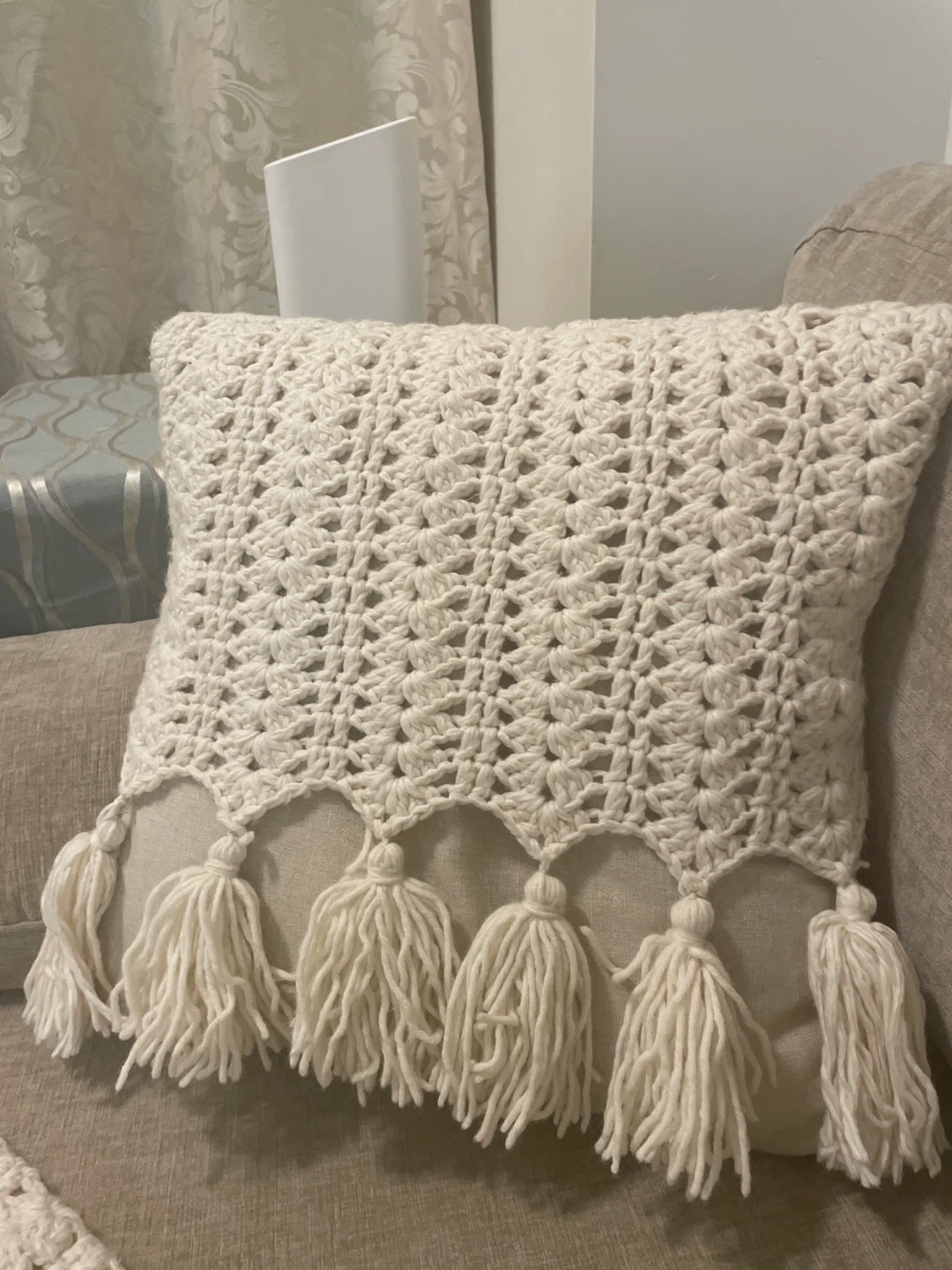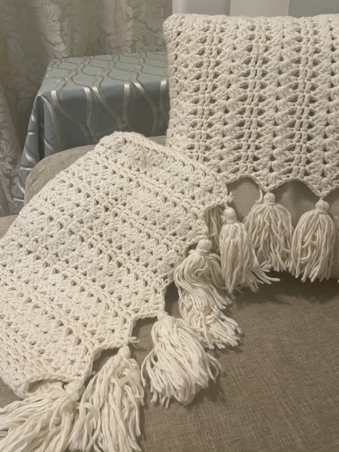 Selling a beautiful handmade crochet 2 pillow cover set. The intricate crochet work and tassel details add a cozy and stylish touch to any room. Perfect for adding warmth and texture to your home decor!