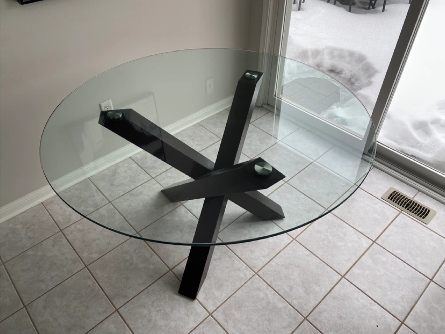 Buy & SellRound glass kitchen tableRound glass kitchen table$175Glass top kitchen table with wooden legs. 52” diameter. 31.5” High.ConditionGoodDimensions52” Diameter. 31.5” High. WHERE TO MEETCheck LocationView MapSELLERverifiedAlanWest Oak Trails600 reviews1 chats·0 favorites·13 viewsSEND CHAT TO SELLERHi Alan! I’m interested in your listing.Hi Alan! I’m interested in your listing.Get the Karrot app to chatSign In to chat