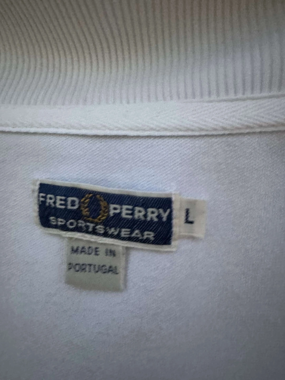 Vintage Fred Perry track jacket. White colour. Features signature Laurel Wreath branding. Made in Portugal. Size Large.