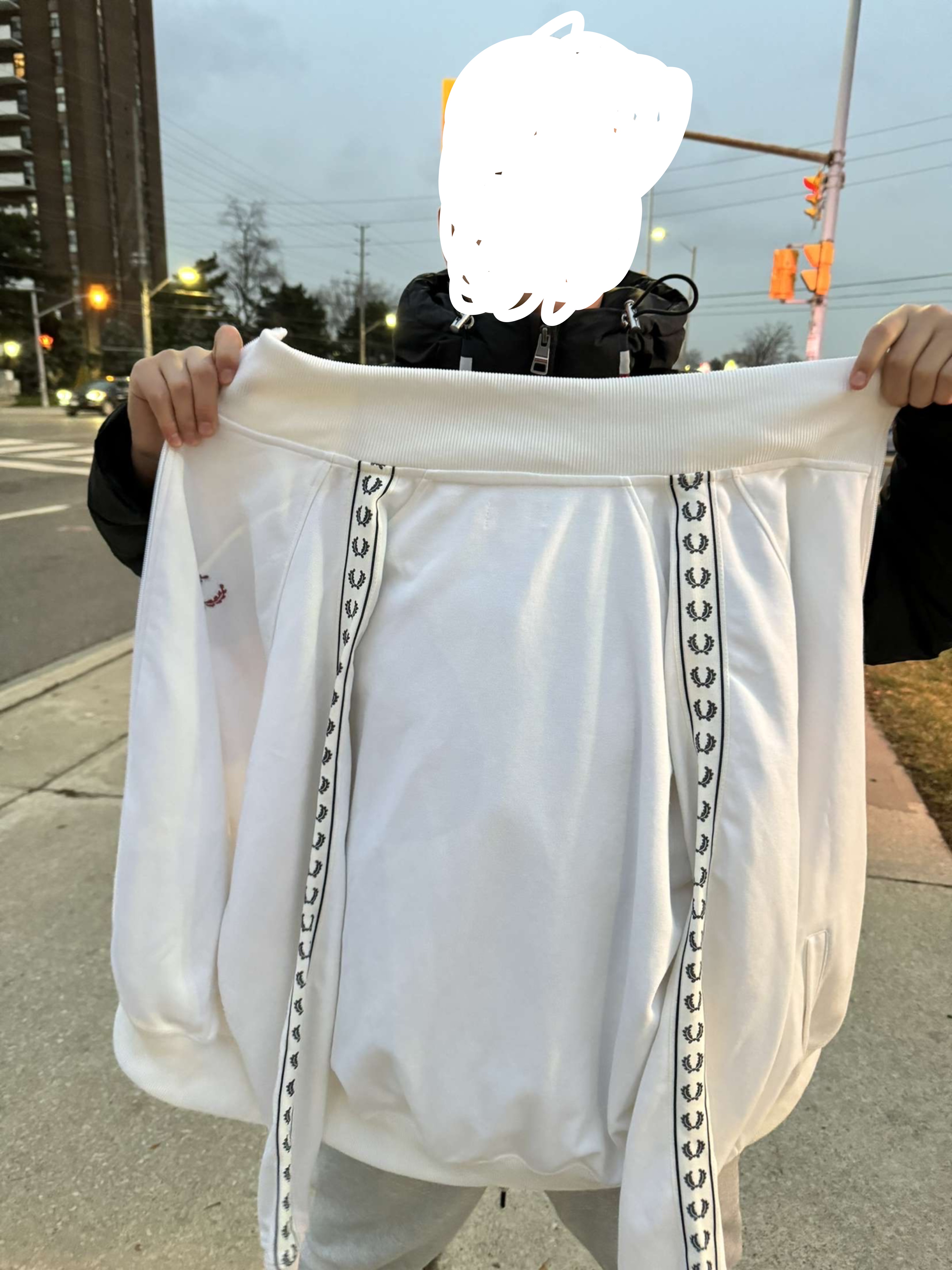 Vintage Fred Perry track jacket. White colour. Features signature Laurel Wreath branding. Made in Portugal. Size Large.