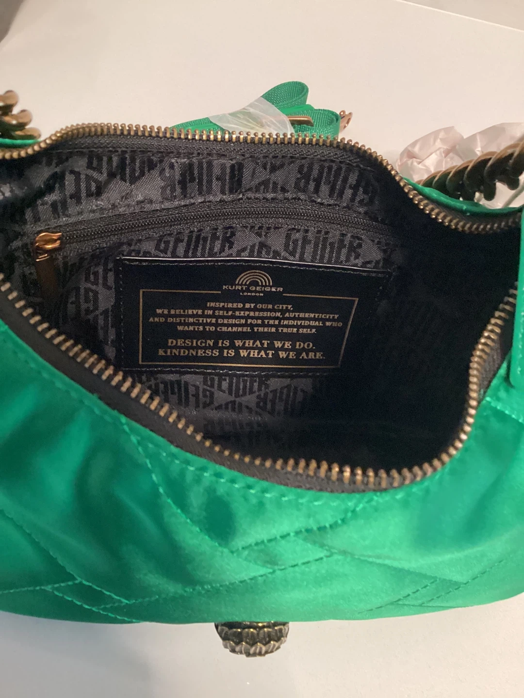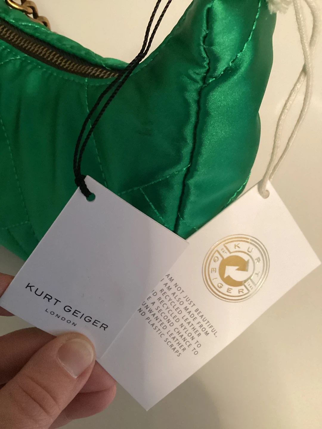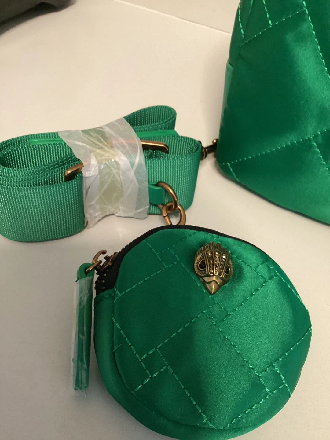 Kurt Geiger Green Quilted Shoulder Bag with Coin Purse