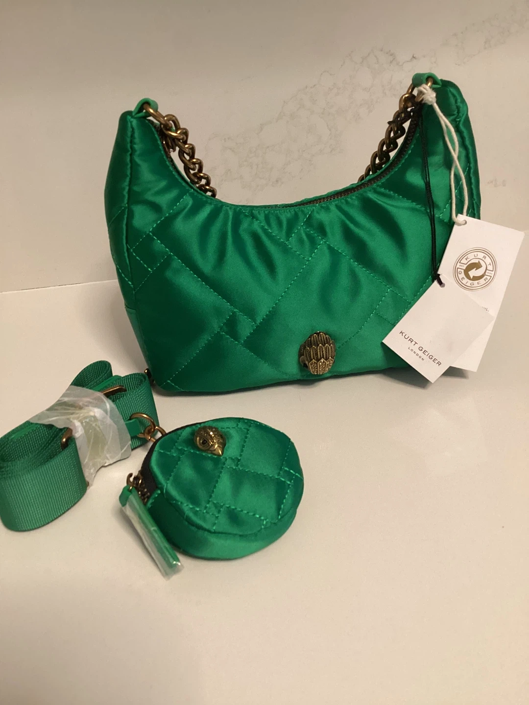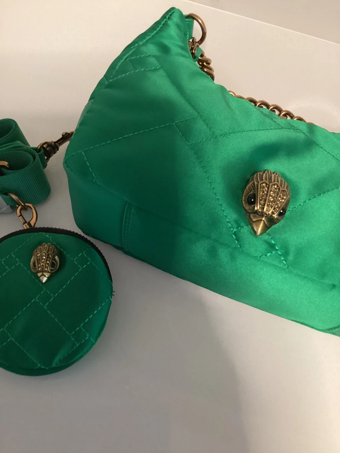 Kurt Geiger Green Quilted Shoulder Bag with Coin Purse