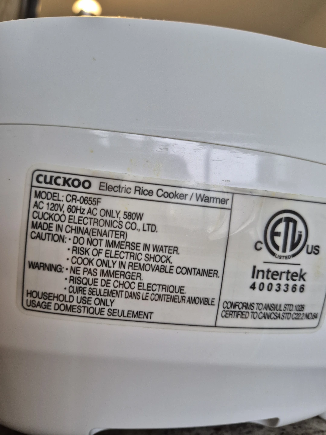 Korean brand Cuckoo Electric Rice Cooker/Warmer, model CR-0655F. Original price $139.99+tax