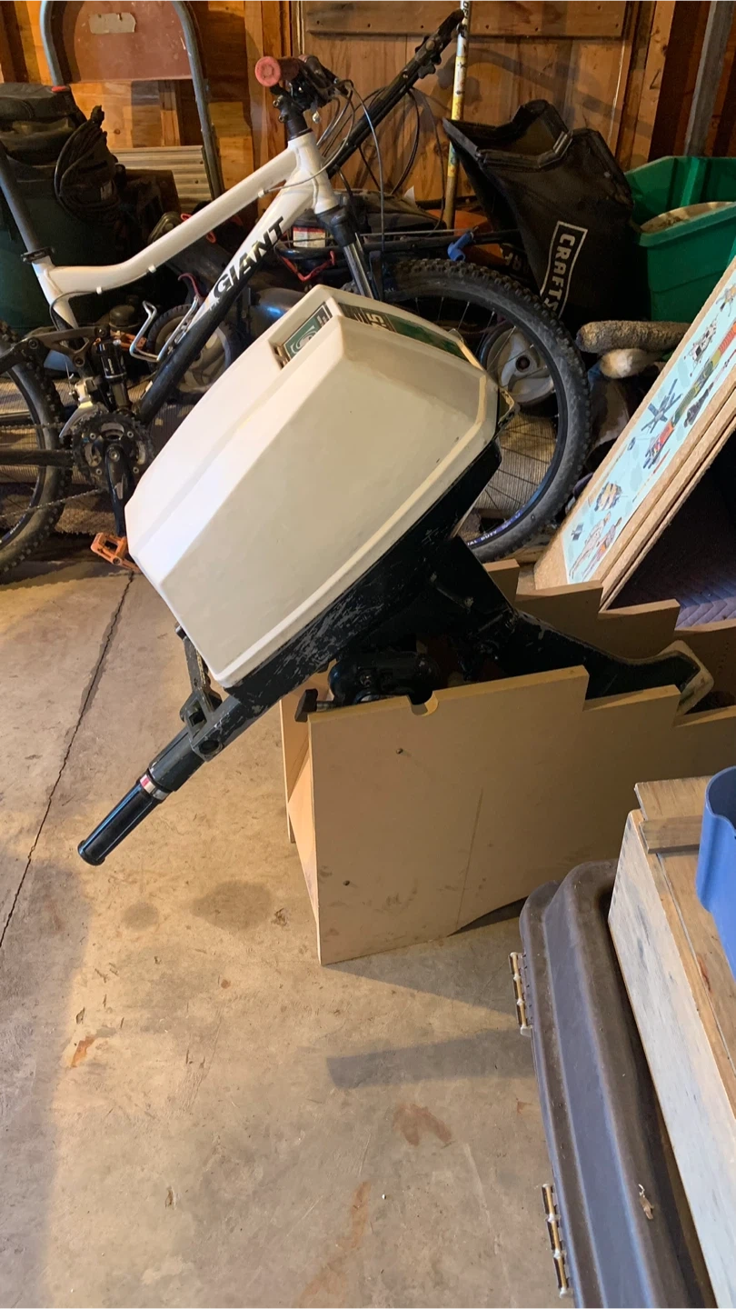 This is a Ted Williams 7.5 horsepower outboard motor. It has a twist throttle and shallow water drive. Hood has been redone, carb rebuilt with a kit and tuned and leg oil refilled. It’s all clean and ready for the water