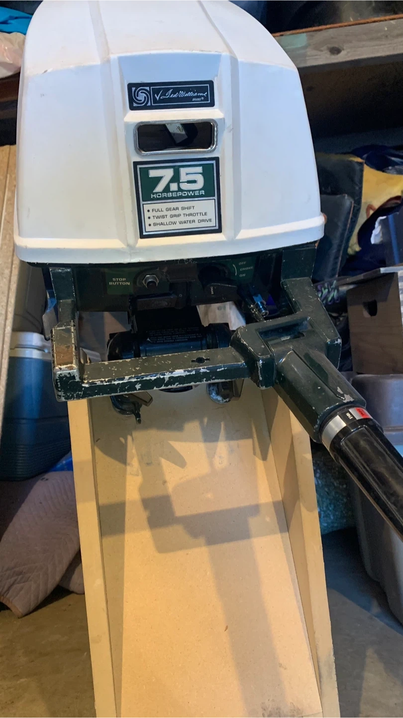This is a Ted Williams 7.5 horsepower outboard motor. It has a twist throttle and shallow water drive. Hood has been redone, carb rebuilt with a kit and tuned and leg oil refilled. It’s all clean and ready for the water