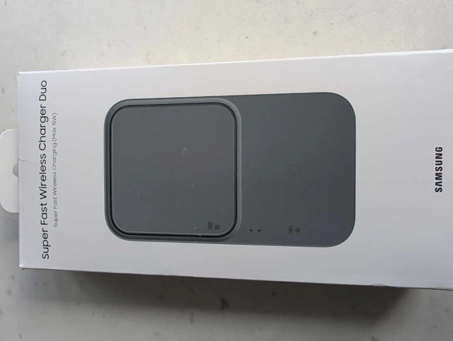 Charge your devices quickly with this Samsung Super Fast Wireless Charger Duo (Max 15W). This charging pad is in new condition and ready to power up your smartphone and smartwatch simultaneously! * Super Fast Wireless Charging (Max 15W) * Charge two devices at once * Compatible with Qi-certified devices