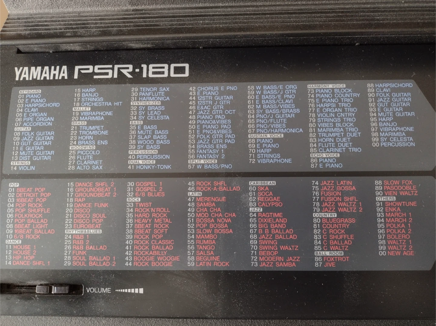 This Yamaha PSR-180 portable keyboard has many built-in tones and rhythms. It's great for learning or just having fun with music. Includes owner's manual and stand .