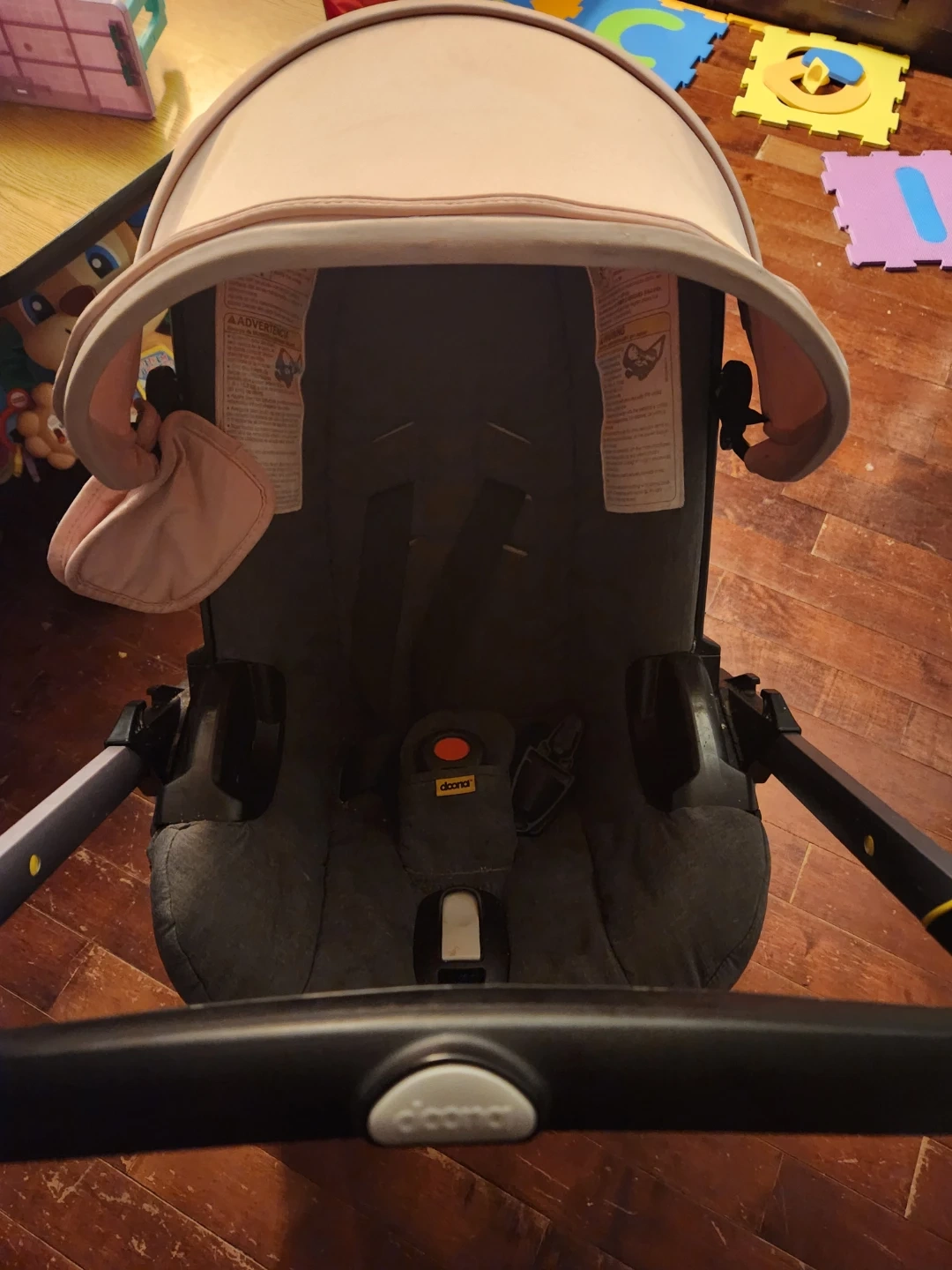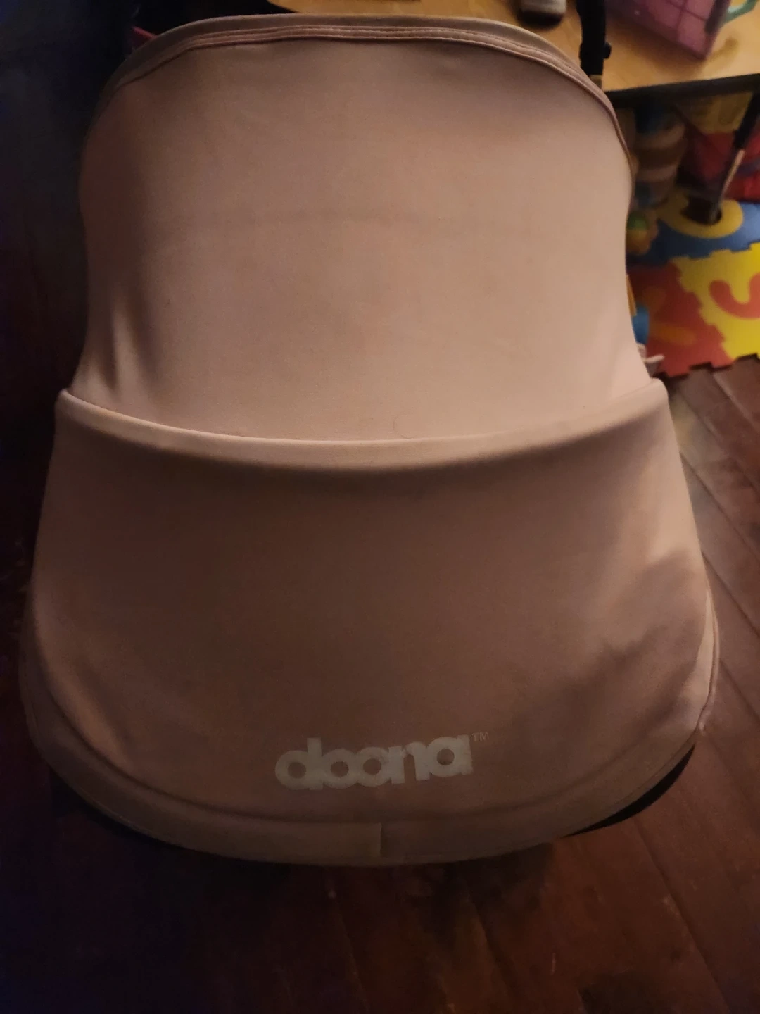 This is a Doona infant car seat and stroller combo. It's a combination stroller and car seat. Good condition, can use a washing. It has a pink canopy and dark grey fabric. Expires 2028-05-23.