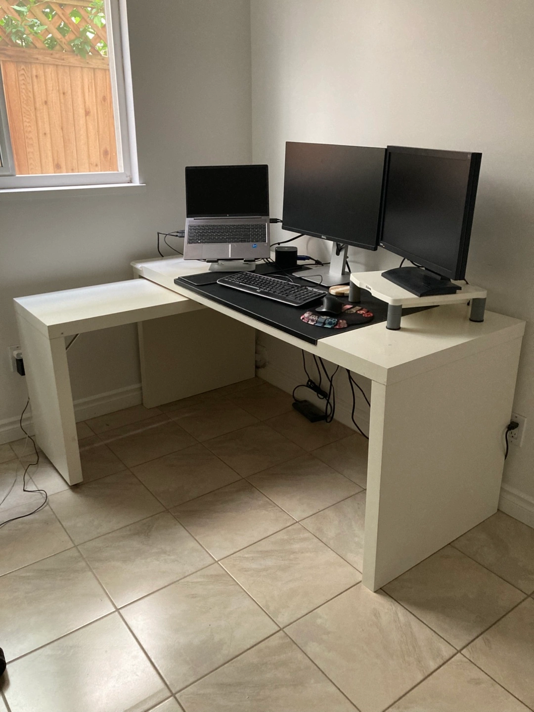 This well-loved sturdy white IKEA desk is looking for a new home! Perfect for your home office or study space.