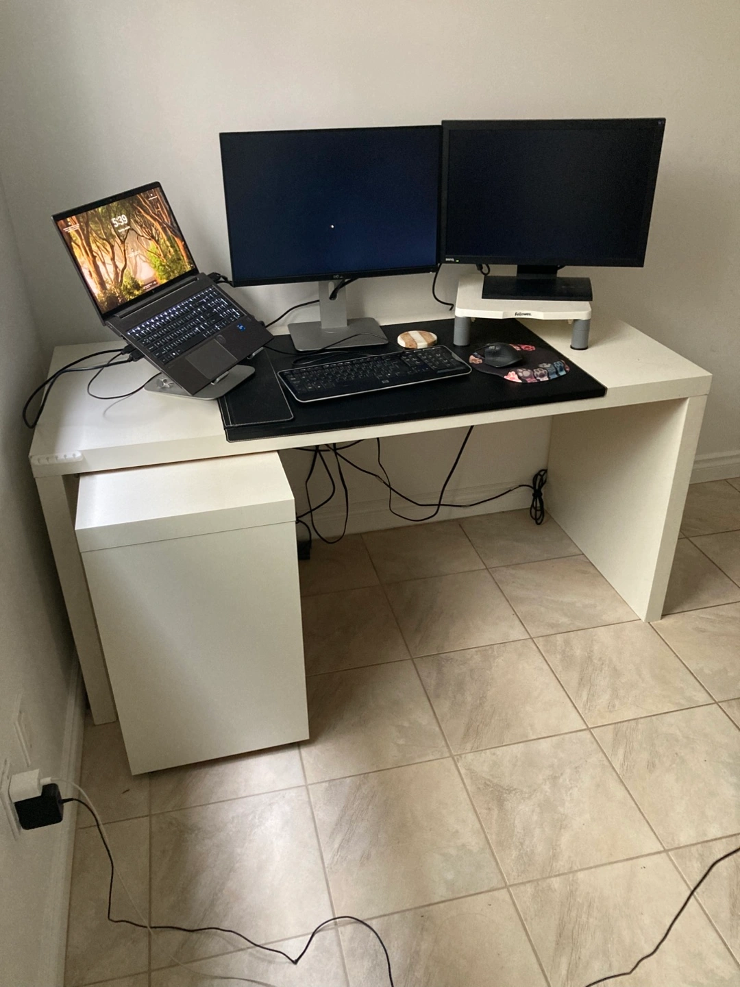 This well-loved sturdy white IKEA desk is looking for a new home! Perfect for your home office or study space.