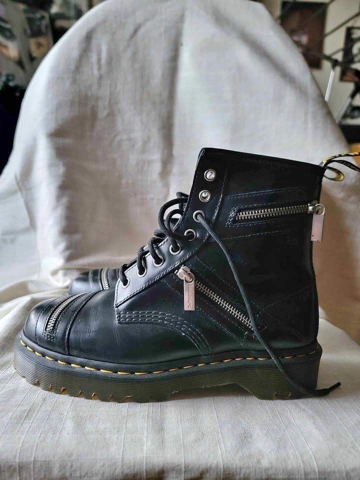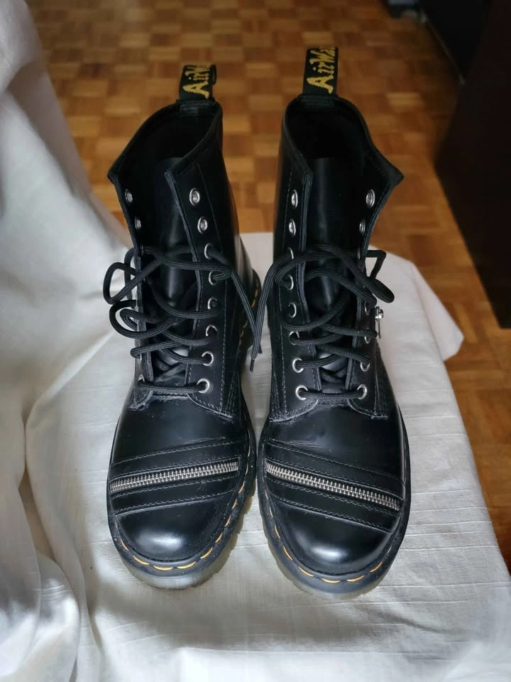 1460 Bex Leather Zipper Boots. Asymmetric zips. Paneled uppers. These DIY-inspired boots are a tribute to our creative wearers who've customized their shoes, boots and bags over the years. They're built from our classic Smooth leather, and tagged with an AirWair heel loop, yellow welt stitching and a grooved air-cushioned sole. Pick up at Metrotown Old Orchard Shopping Centre parking lot.