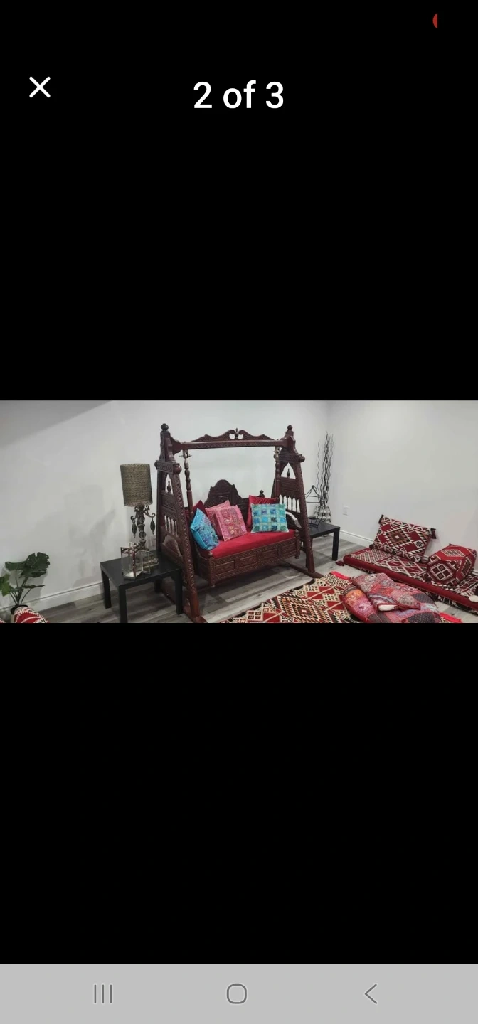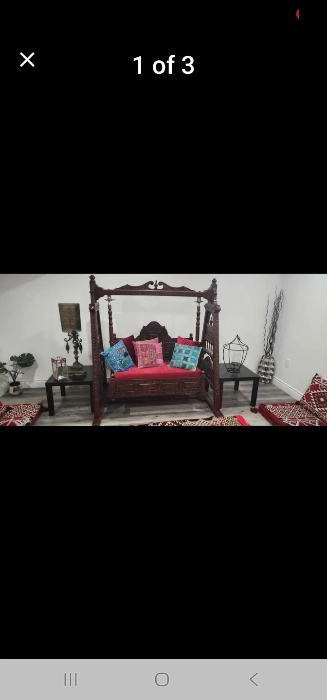 Ornate Wooden Swing Chair with Cushions