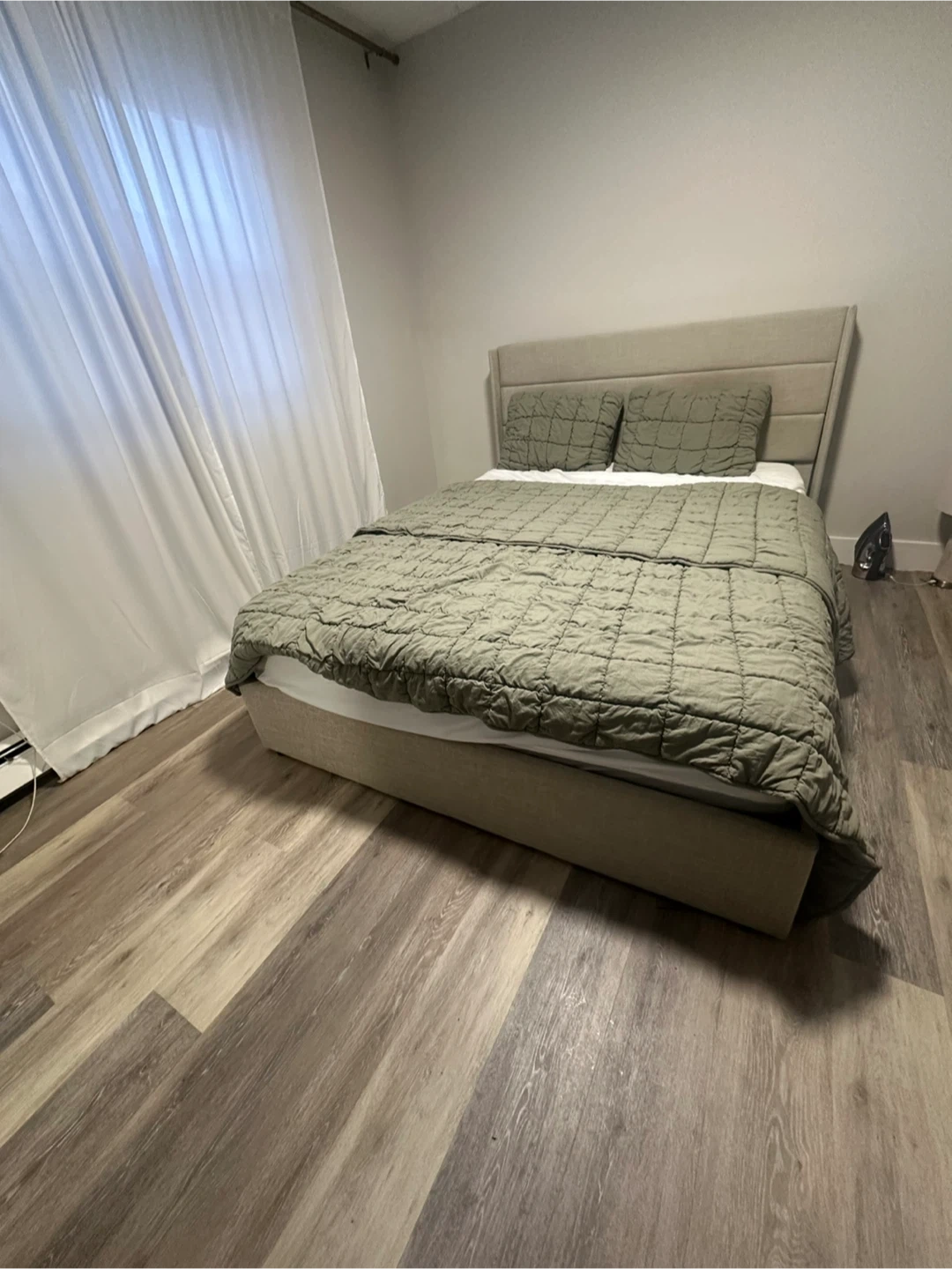 Queez size Sleepys Memory Foam Mattress by Sealy and bed frame