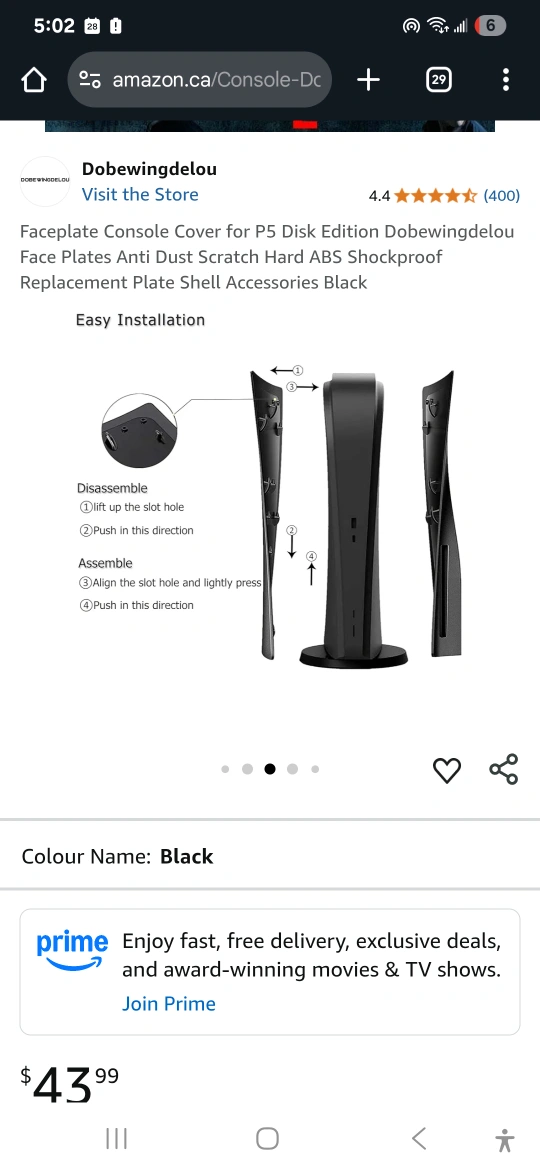 Selling a Dobewingdelou faceplate console cover for the PS5 Disk Edition. It's black and made of durable hard ABS material. It's designed to be anti-dust and anti-scratch. Easy to install!