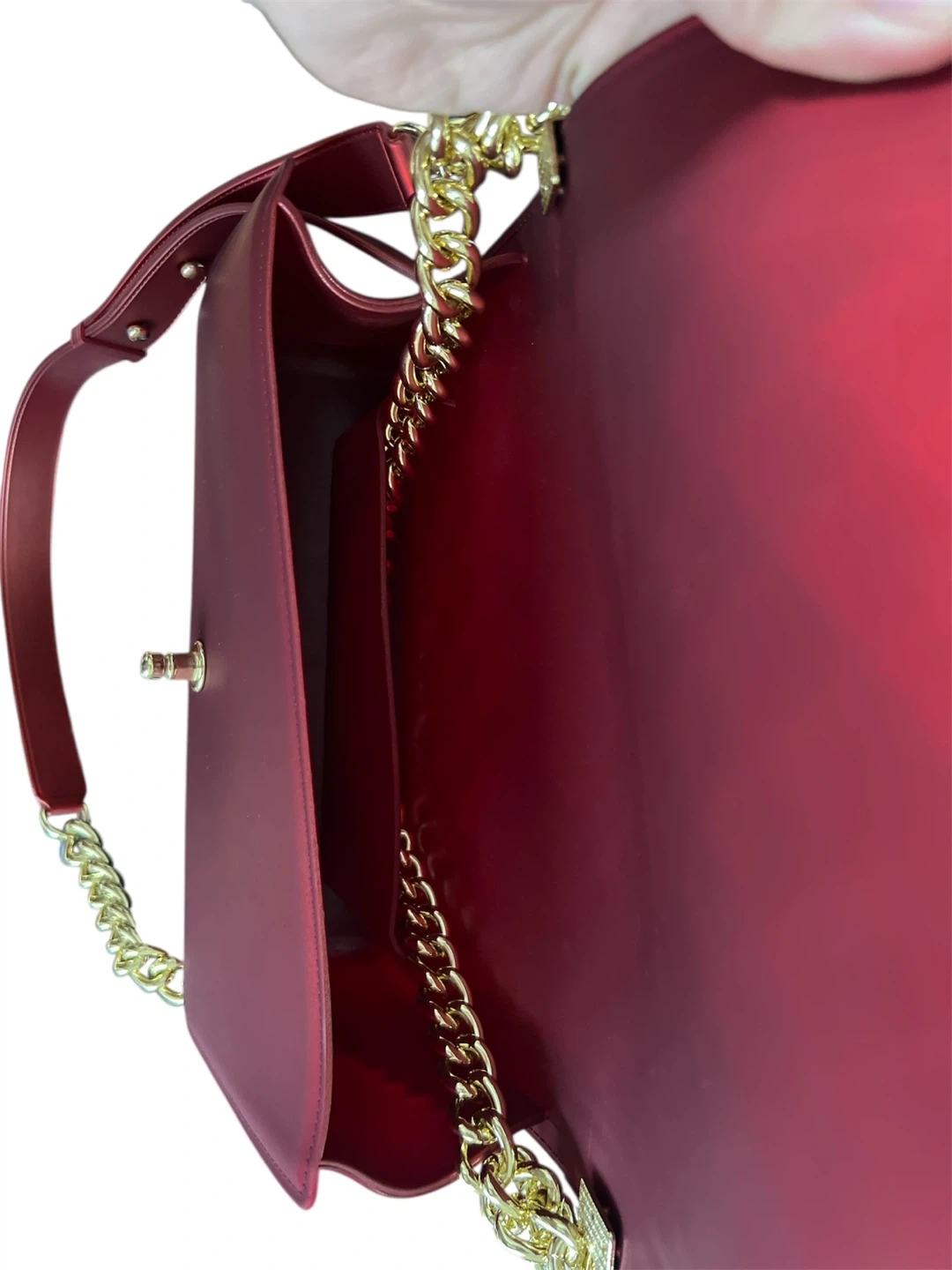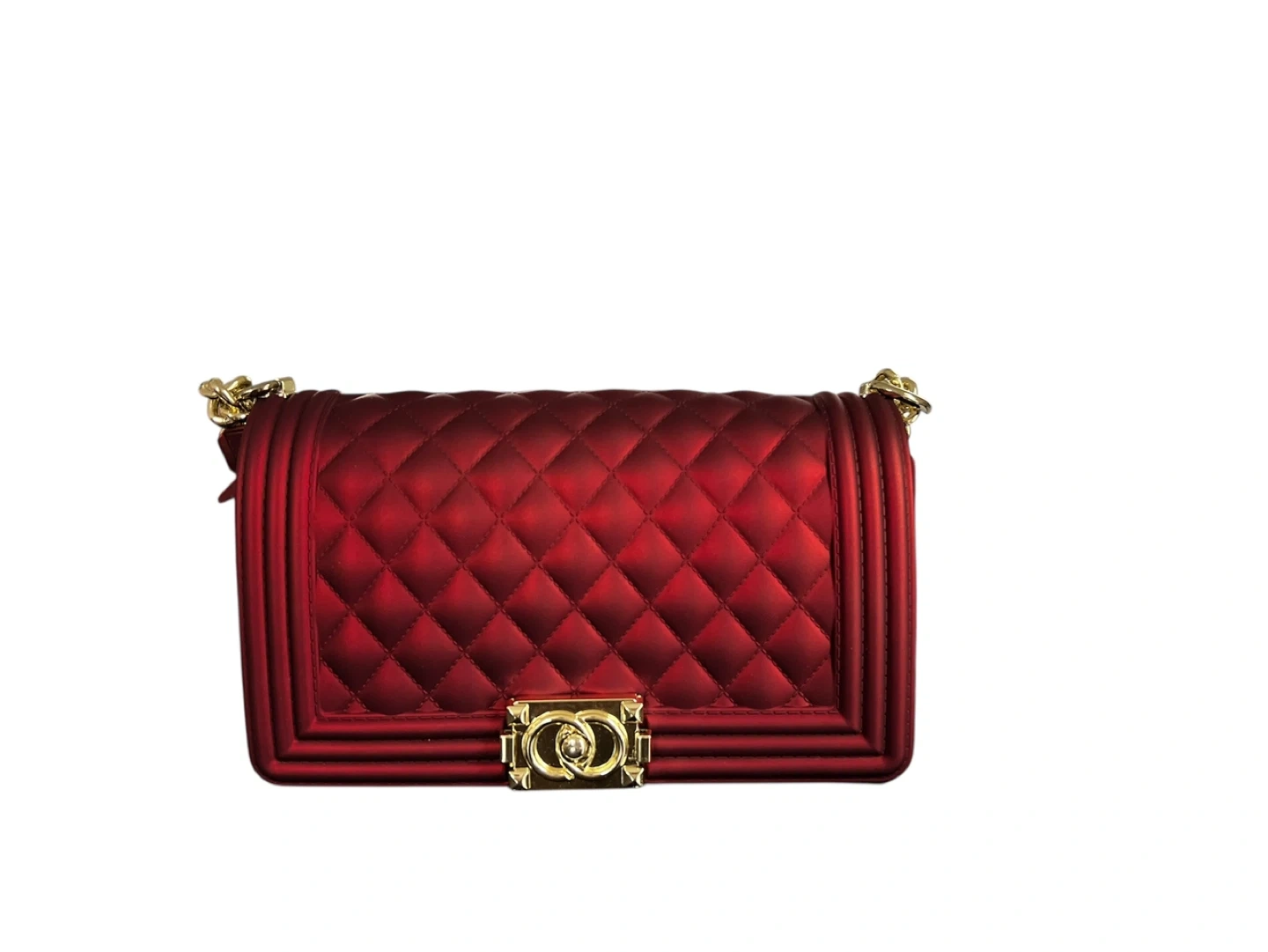 Selling a stylish red jelly purse featuring a distinctive quilted pattern and a chic gold chain. This purse is perfect for adding a pop of colour to any outfit. It's in great condition and ready for a new owner!