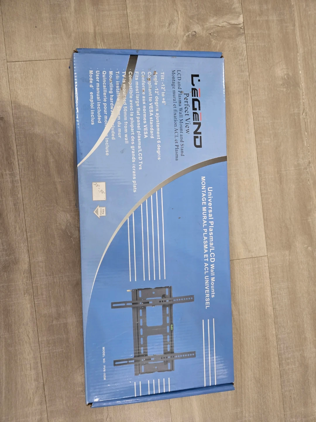 This LEGEND Perfect View wall mount is for universal plasma, LCD, and LED TVs. It offers tilt adjustment from -12 to +6 degrees and angle adjustment from -12 to +6 degrees. It's compatible with VESA standard and fits most large flat panel TVs. Mounting hardware is included.