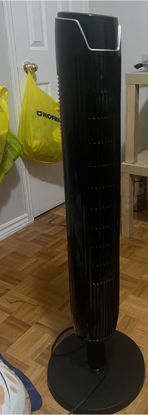 This is a black tower fan. It's tall and sleek for any room. Provides good air circulation.I don’t have any remote so selling for little chip but it works really well.