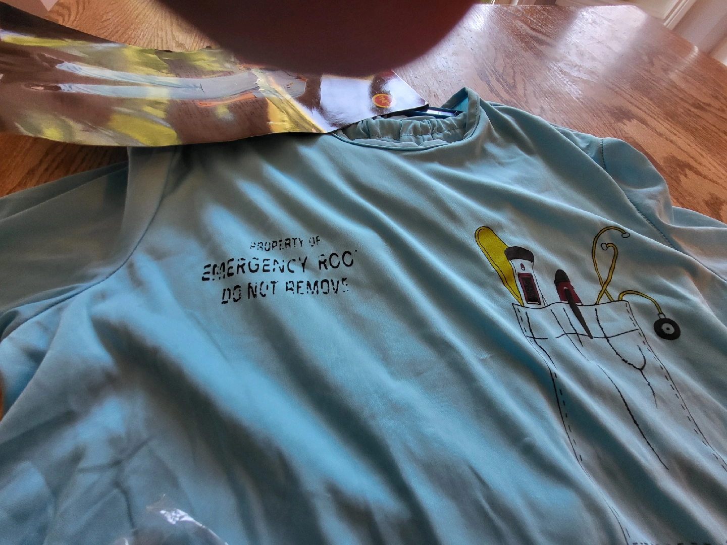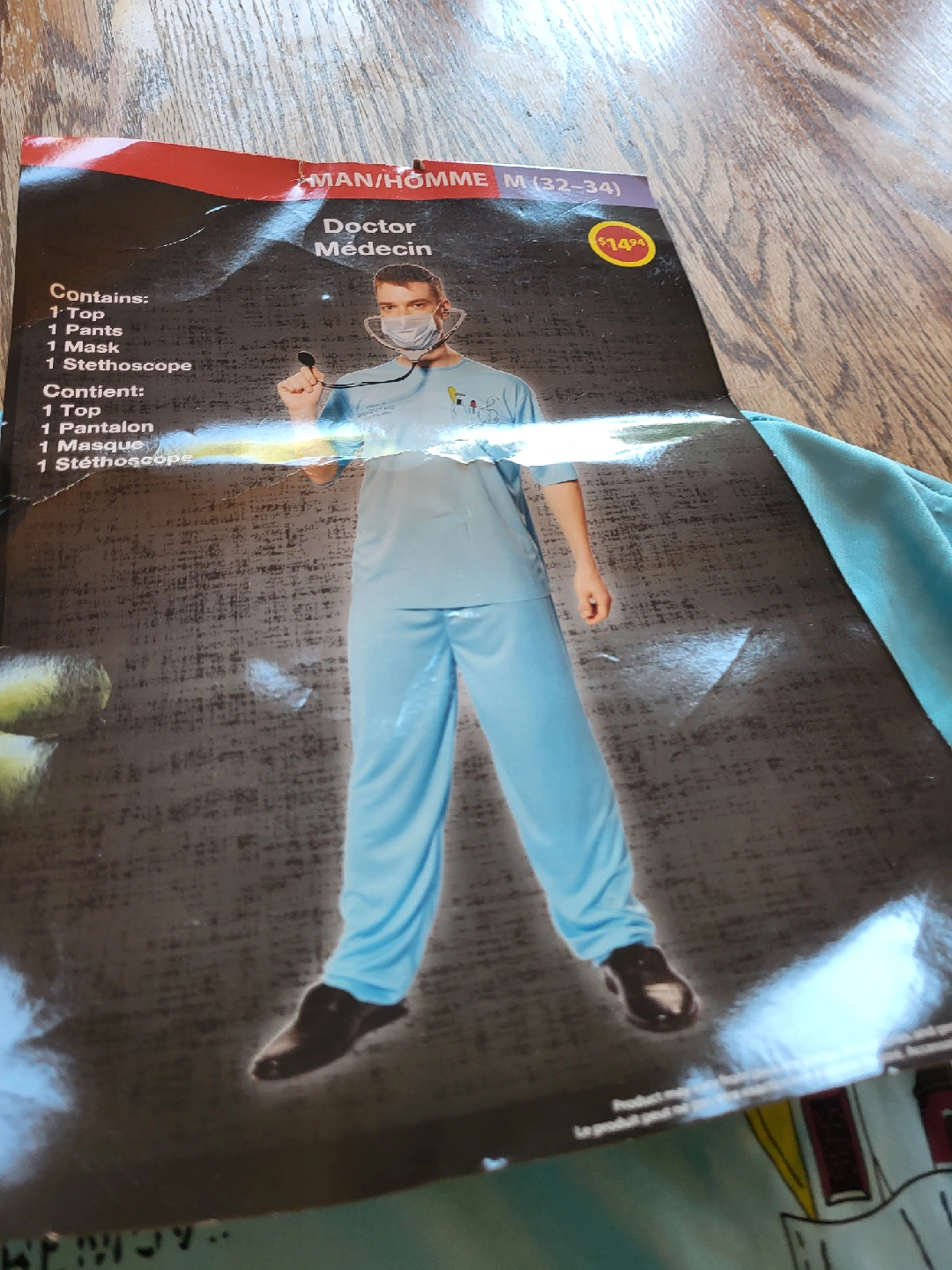 Doctor costume in size medium (32-34). Includes the top, pants, mask, and stethoscope. Perfect for dress-up or Halloween!