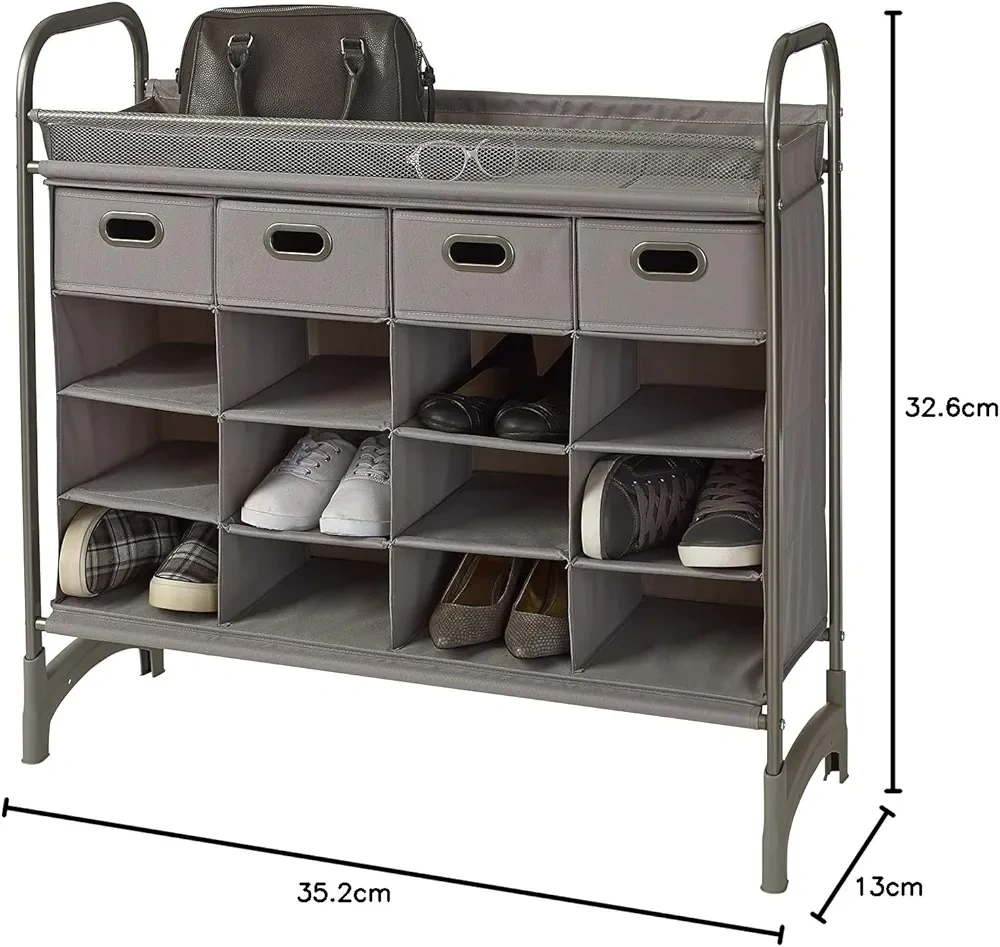 16 Compartment Shoe Organizer with Drawers