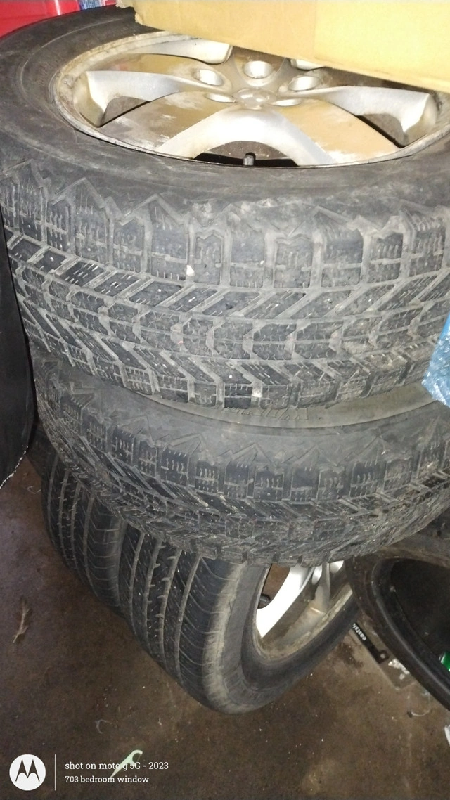 10Selling 2 sets of Dodge Caravan tires: 4 Bridgestone winter tires and 4 Michelin all-season tires. One set is on 16" steel rims and the other is on 16" alloys. Best offer.
