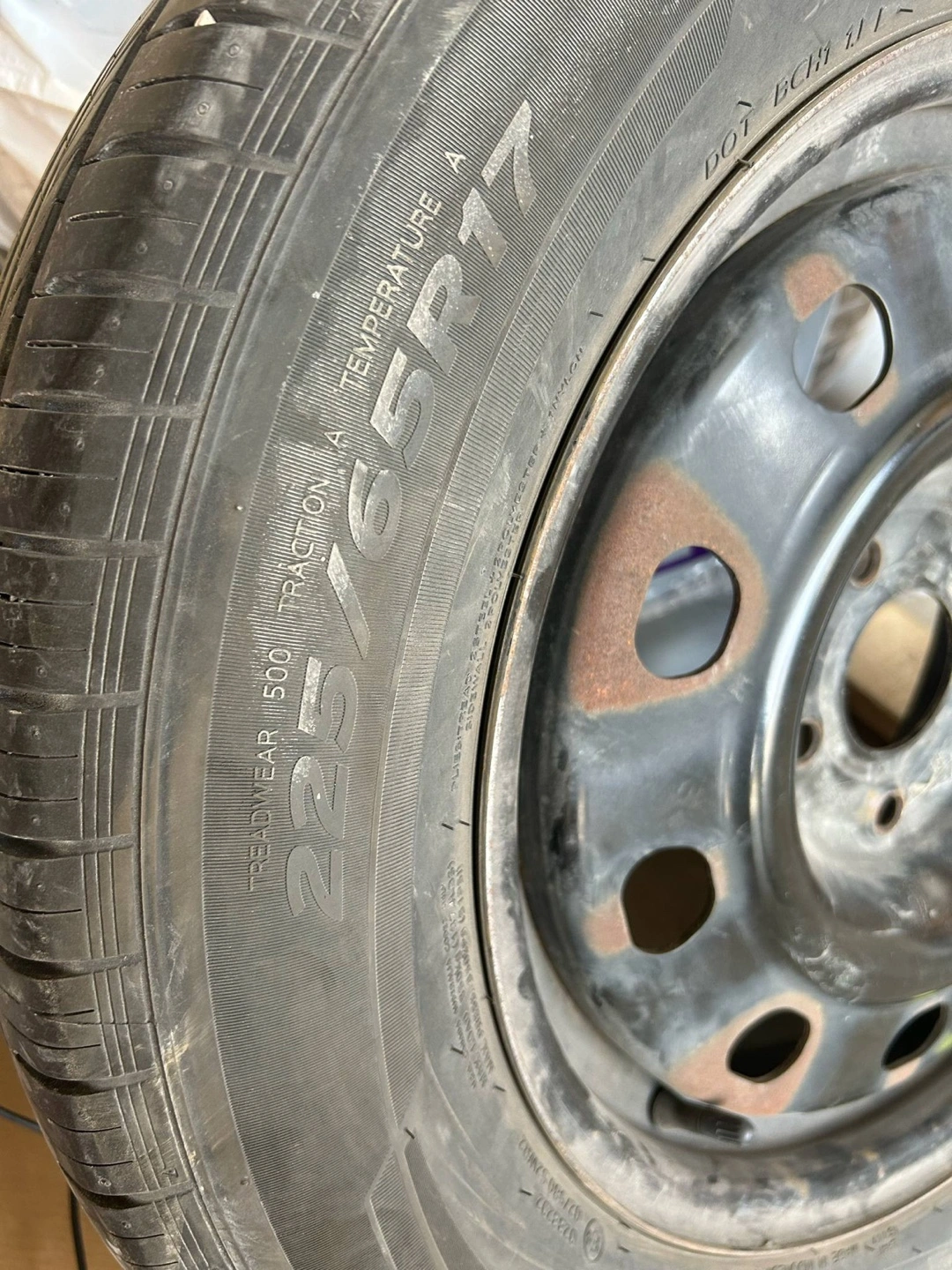 112Dodge caravan ALL SEASON TIRES, size 225/65R17 mounted on original rims. tread depth shown. Used only 1 season (summer). Reason for selling: VAN SOLD Price $244 each or $950 for all