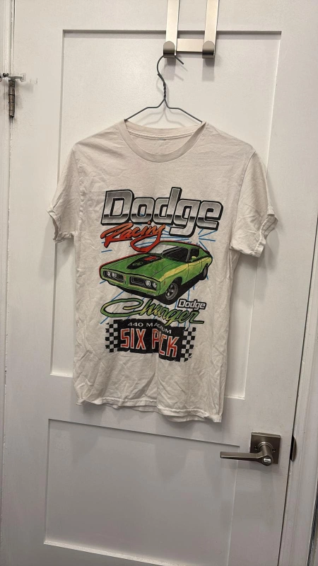 Vintage-style Dodge Racing Charger t-shirt featuring a cool graphic of the 440 Magnum Six Pack Charger. Perfect for any car enthusiast!