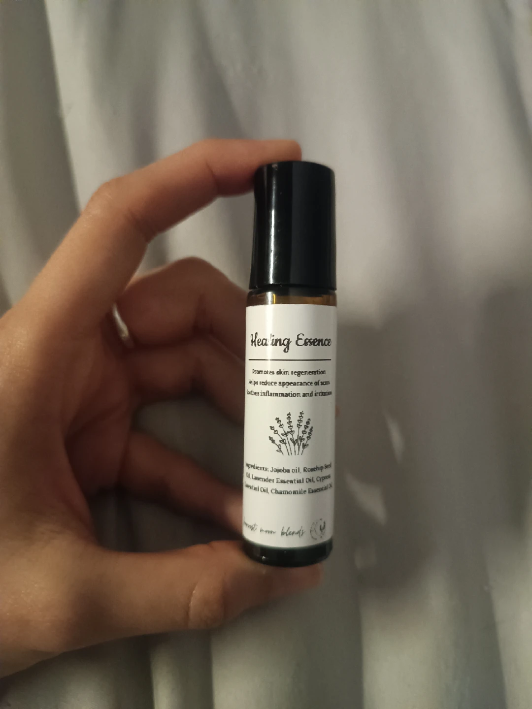 Healing Essence: handcrafted essential oil blend that promotes skin regeneration, helps reduce the appearance of scars, and soothes inflammation and irritation. Also perfect as an eye/face serum!