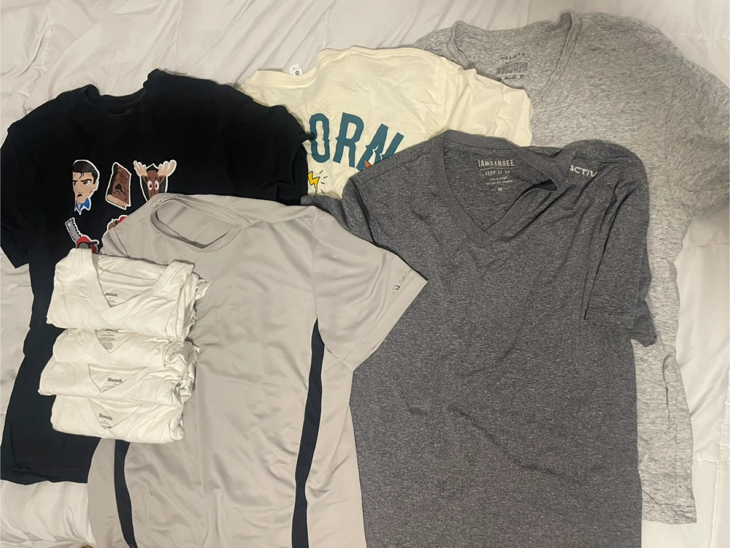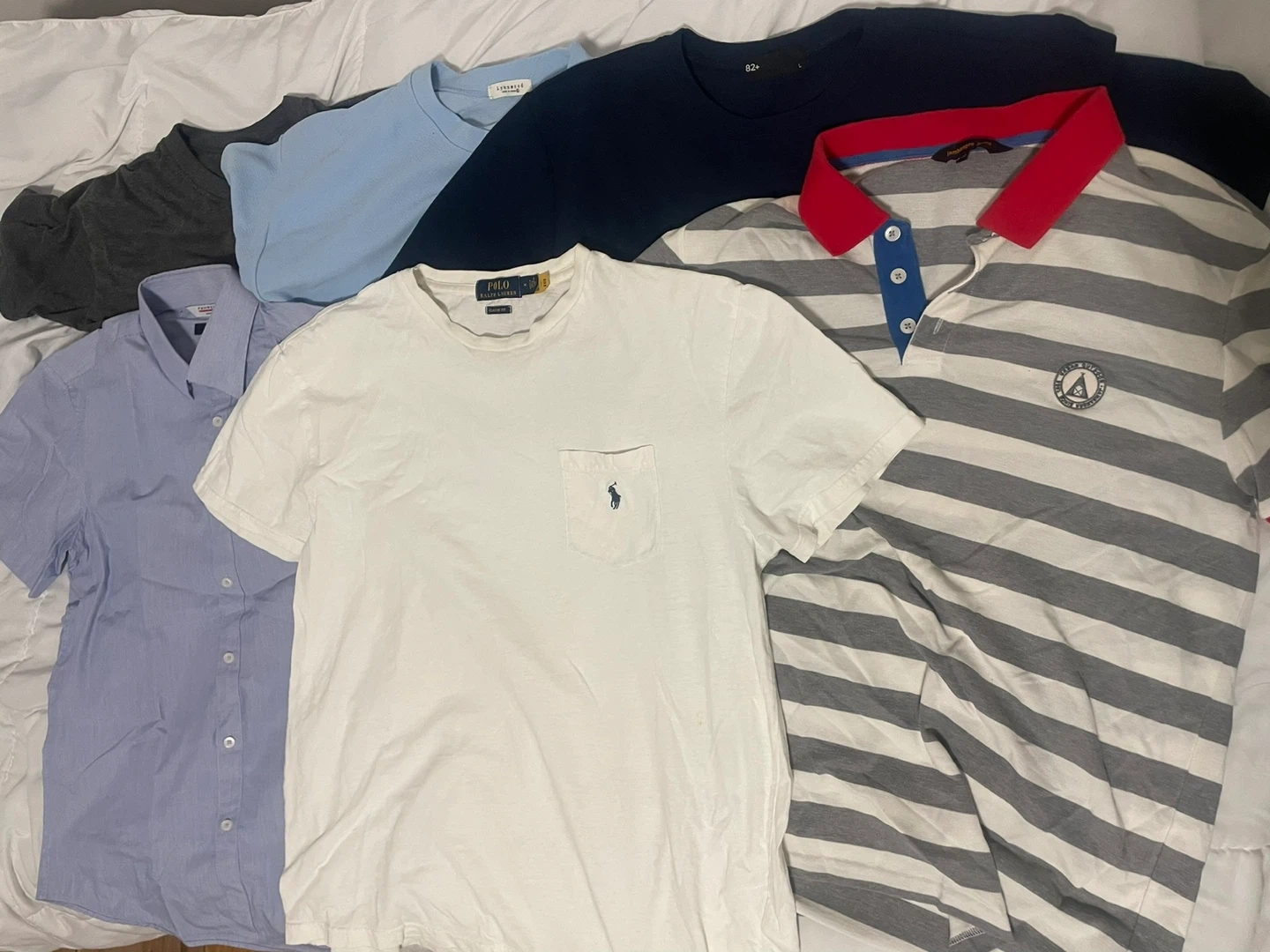 Moving sale – T-shirt bundle $50 for all. Includes Polo Ralph Lauren, Korean brands, Costco white tees, and performance tees. Men’s size 95–100 (mostly L) -used