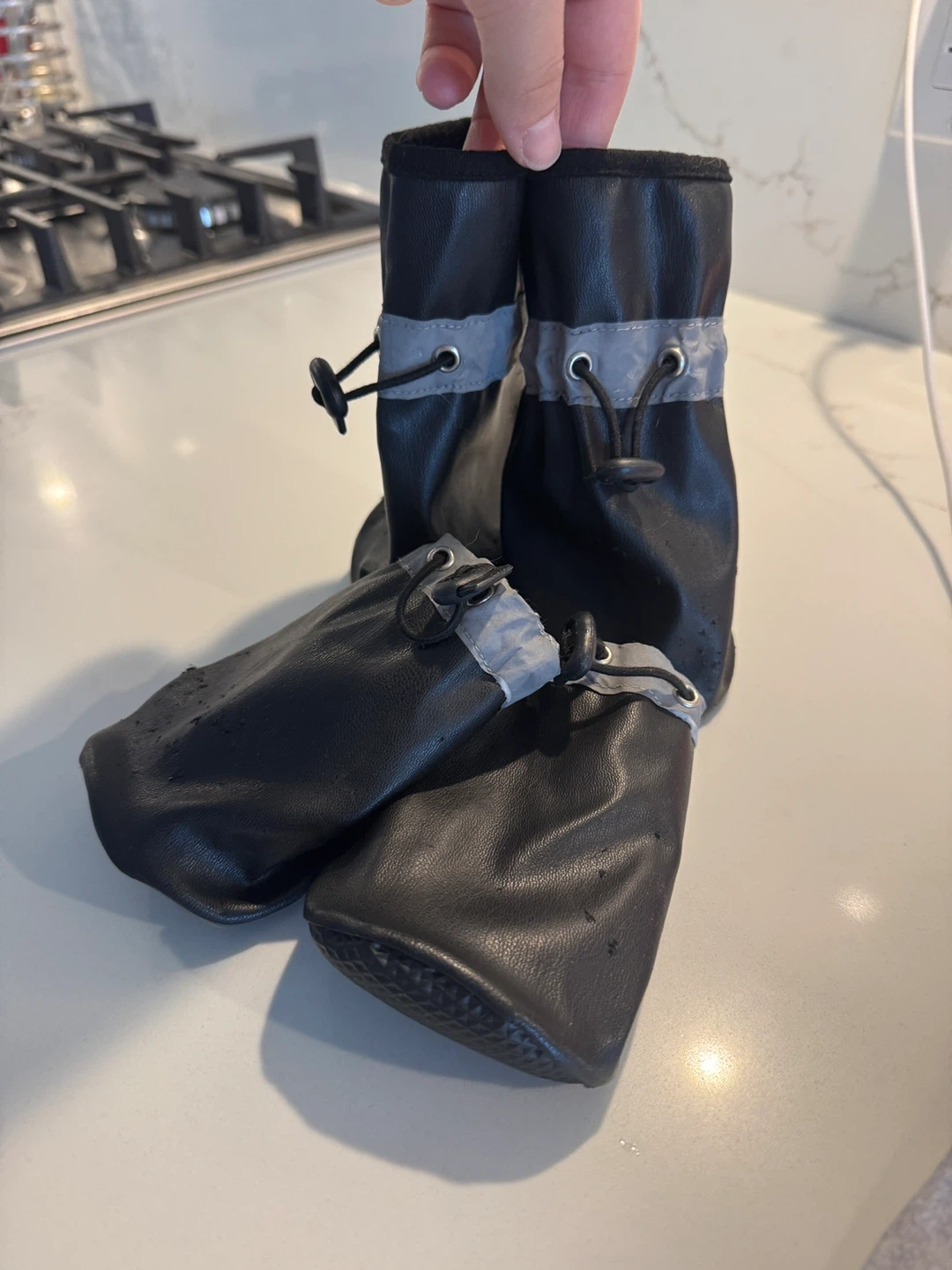 73My dog 37lbs š¾ Keep your furry friend's paws protected with these gently used dog boots! They're size small and perfect for keeping paws clean and safe on walks. They are black and have a drawstring closure for a snug fit. He couldnāt use to wear it thatās why we sell.