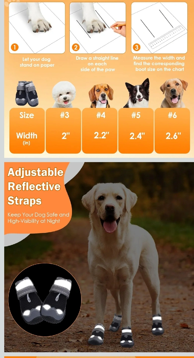 Dog Boots with Reflective Straps, Size 6 - New