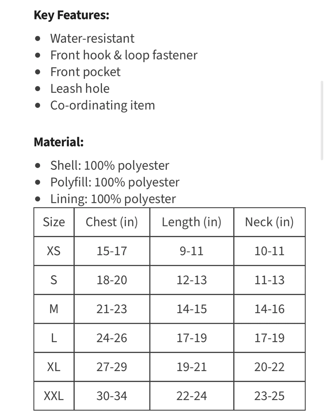 65It is suitable for cats as well. For reference my cat is 4.5 kg and it fits him great. Keep your furry friend warm with this Bailey & Bella puffer coat! It's a stylish and practical choice for those chilly walks!