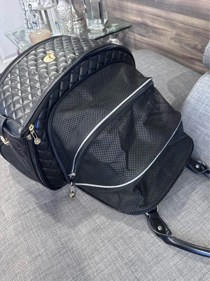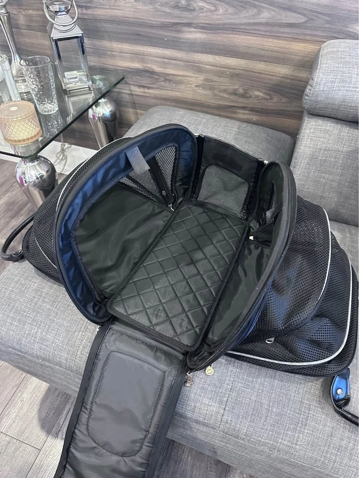 Brand new. Bought it for my dog but it is too small for him! Never used! New Dog Purse Carrier for Small Dogs, 2-Side Expandable Small Dog Carrier, Holds Up to 10lbs PU leather Pet Carrier, Cat Carrier, Airline Approved Puppy Purse Carrier for Travel. Black color