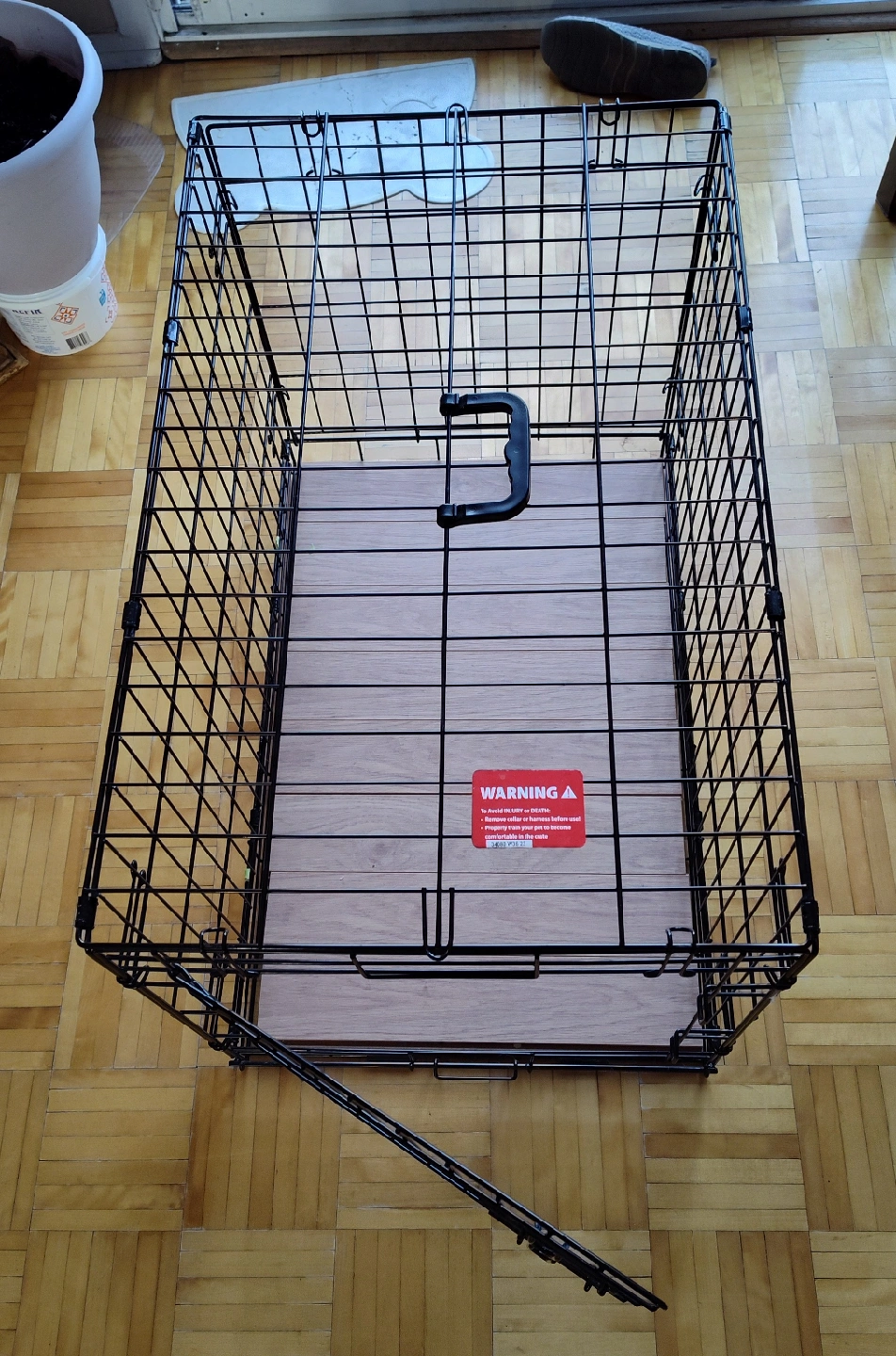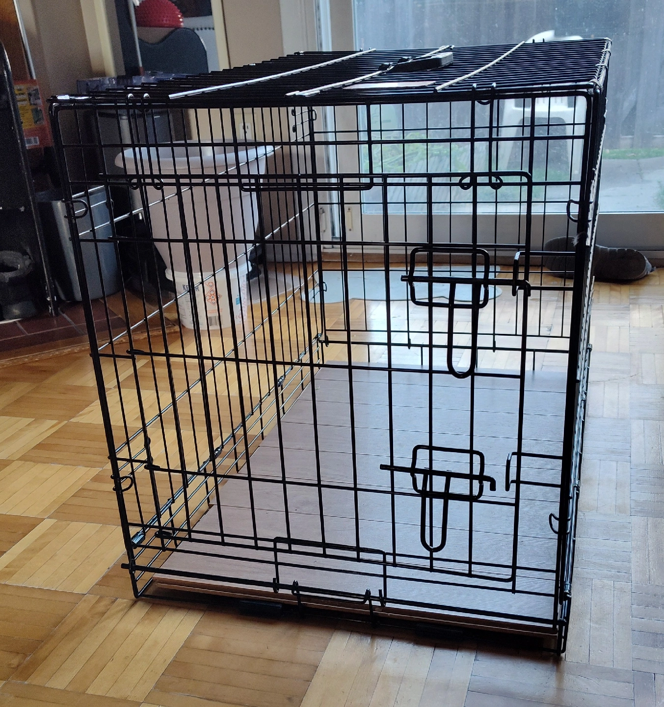 75Selling a black wire dog crate. It's in great condition and ready for a new furry friend! Perfect for training or providing a safe space for your dog. Flooring included lol 19 X 29 X 21