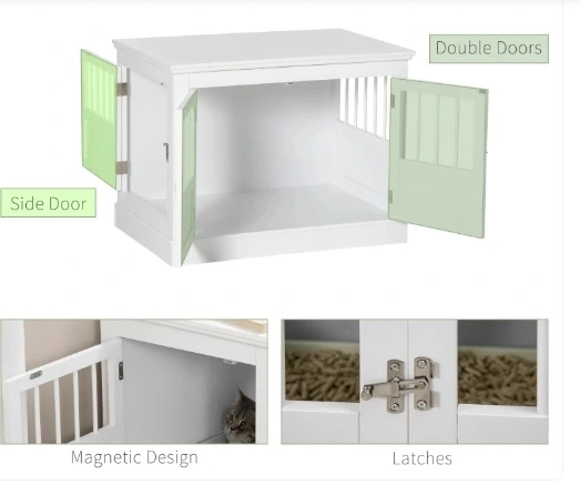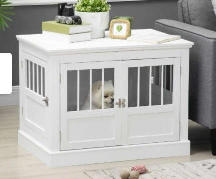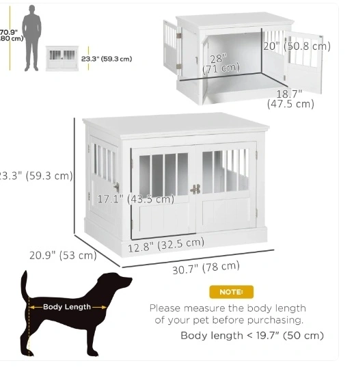 10Dog Crate Furniture Information: Overall dimensions: 30.7"L x 20.9"W x 23.3"H (78L x 53W x 59.3H cm). Inner size: 28.1"L x 18.7"W x 20"H (71.5L x 47.5W x 50.8H cm). Suitable for small dogs under 22 lbs (10 kg). Assembly required. Brand PawHut SKU D31-054WT