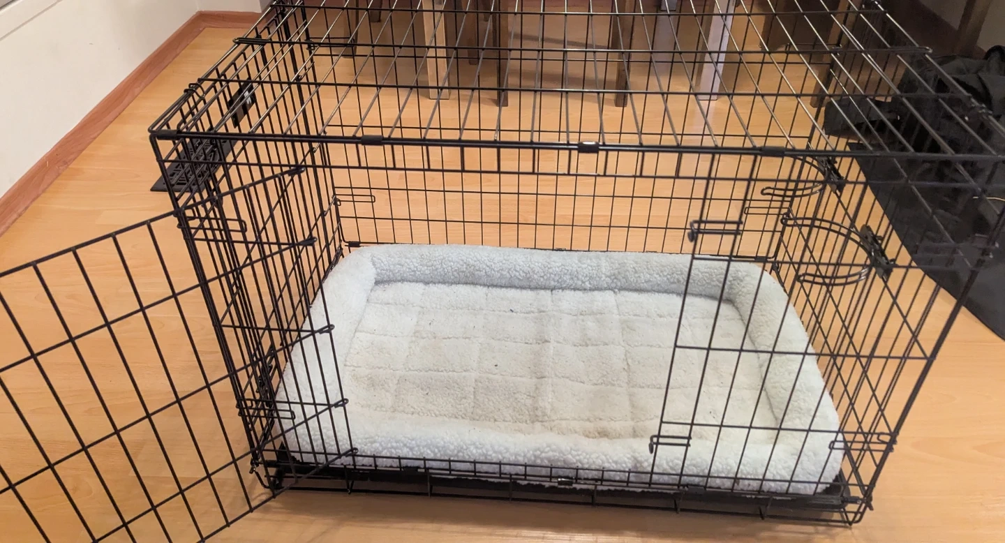 603Dog Crate with Bed & Cover & Food/Water Bowl Holders Selling a dog crate that's in excellent shape! It comes with a comfy bed and a cover to help your furry friend feel secure. Perfect for training or just giving your dog their own space