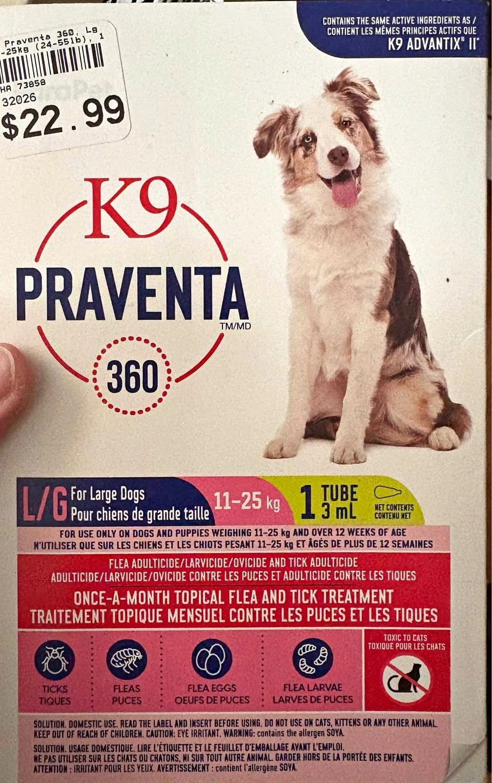 65K9 Praventa Flea and tick treatment for dogs. 11-25kg. 1 treatment. Unopened, brand new. Pick up Holmedale area