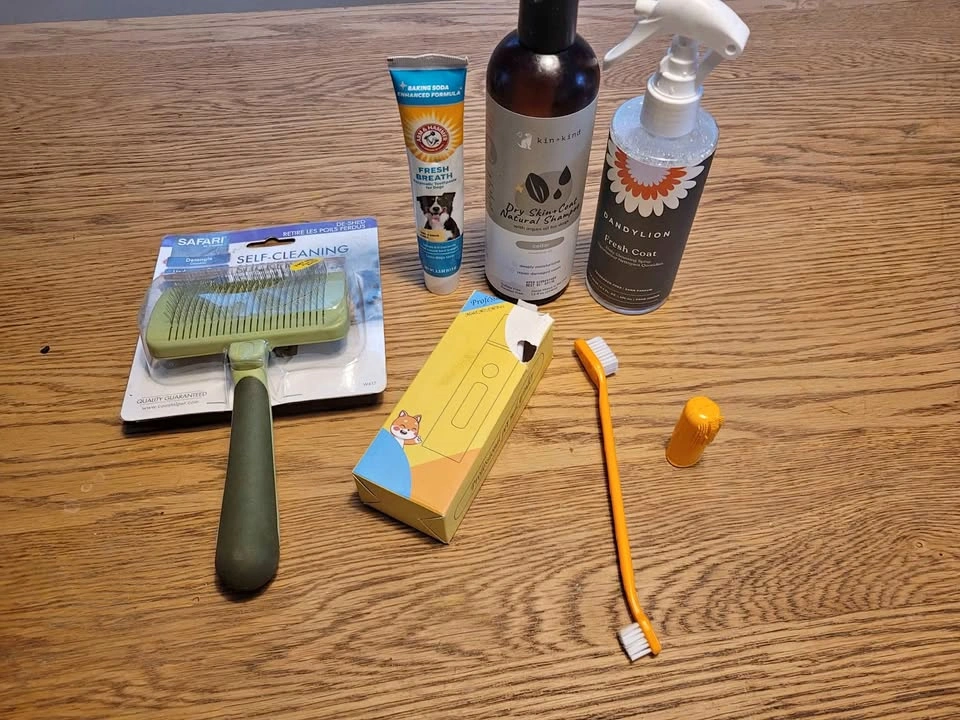 10Over $100 value; Dandylion fresh coat daily cleansing spray for dogs (worth $20) hardly used. Kin-kind dog shampoo, Cedar fragranced (worth $20) hardly used. Unused/New: Safari dog grooming brush (worth $23) Unused/New: Arc & hammer dog 3x piece dental cleaning kit (worth $15) Unused/New: Dog nail grinder professional kit med-large dogs (worth $25)
