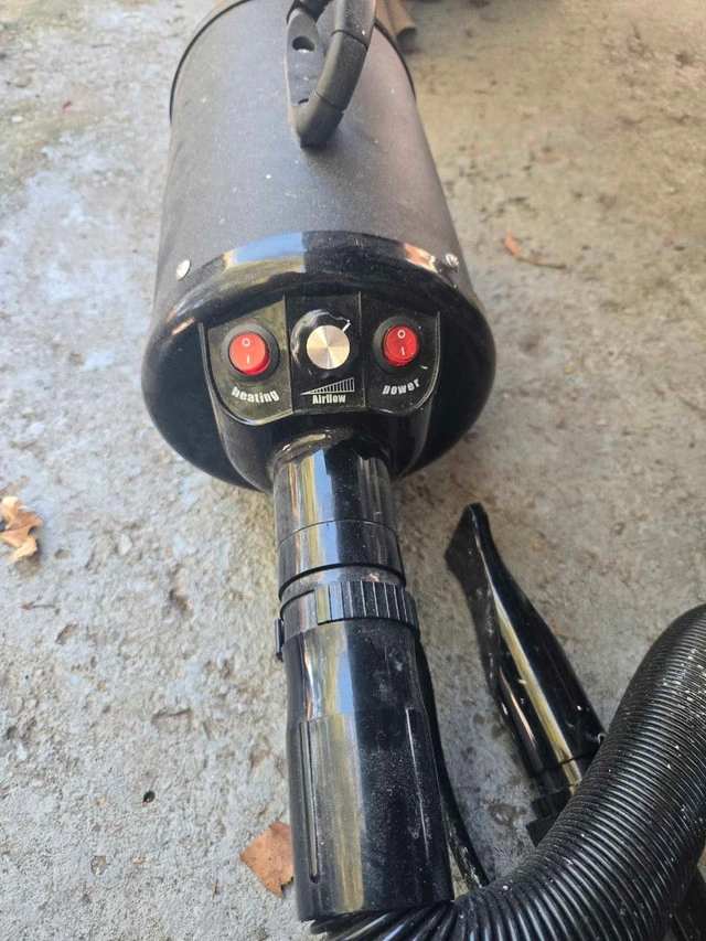 21This high-velocity dog grooming dryer is perfect for quickly and efficiently drying your furry friends. It features adjustable airflow and heat settings to suit different coat types and sizes. It is in used condition and has some cosmetic wear, but functions perfectly. Specifications: * Adjustable Airflow * Adjustable Heat * Portable Design This dryer is ready to help you achieve salon-quality results at home! Don't miss out on this opportunity to save time and effort in your pet grooming routine. If the ad is up, it's available. Grab it before it vanishes into thin air! Payment: Cash accepted