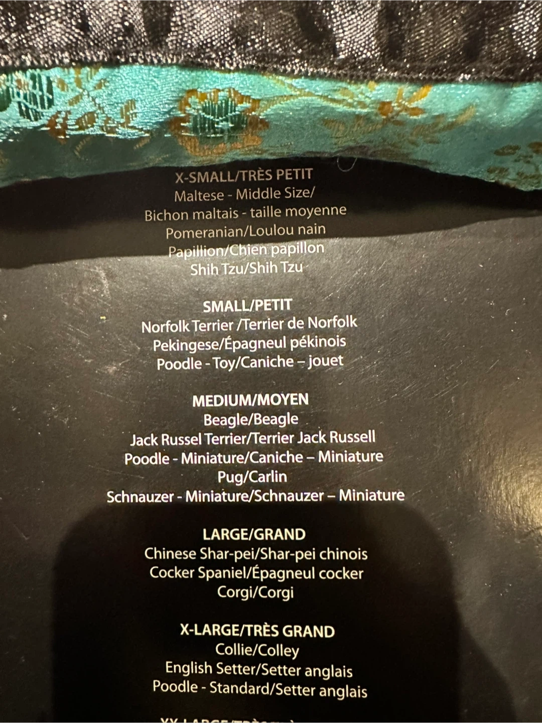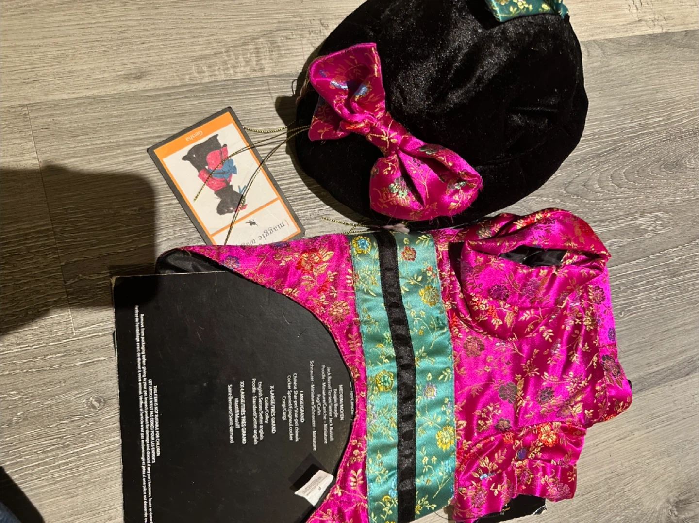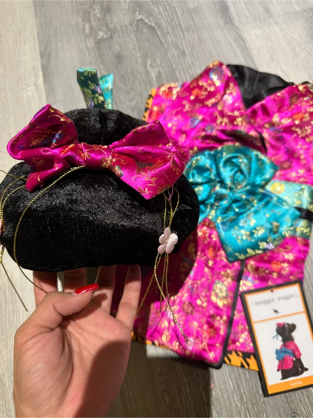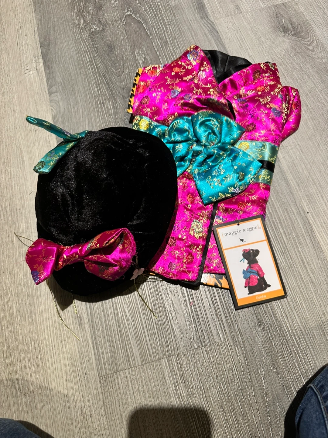 106This is a Maggie Waggle Geisha costume! It's in great new condition and comes with the hat and kimono-style top. Perfect for your furry friend to dress up!