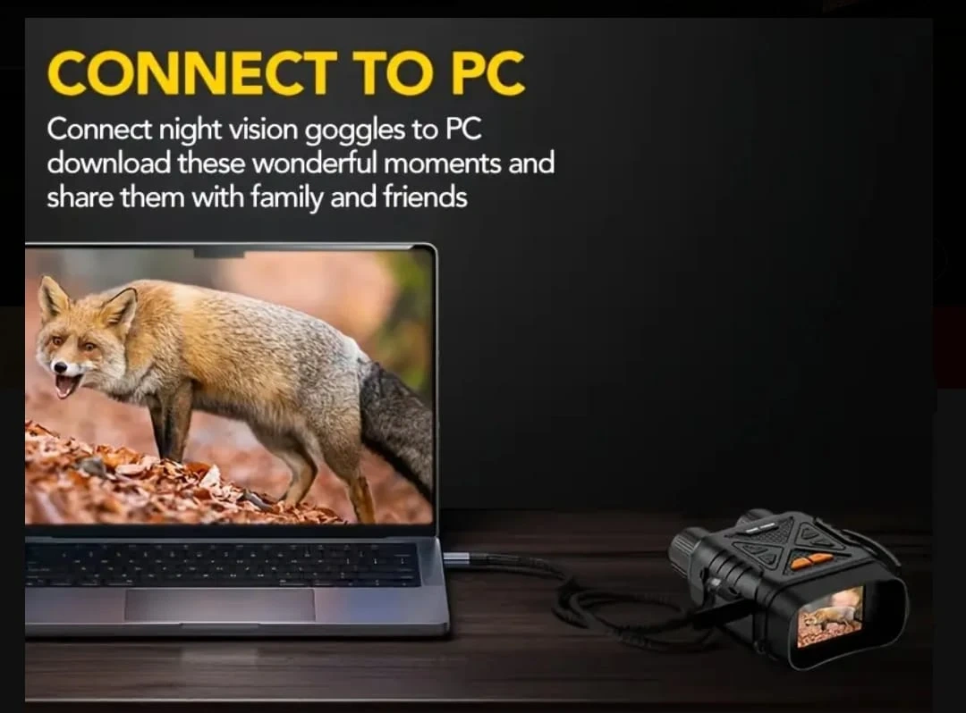 NEW UPGRADE- Now you can directly connect your Night Vision Binoculars to your PC or Laptop ( USB-C charging & Data Cable provided)