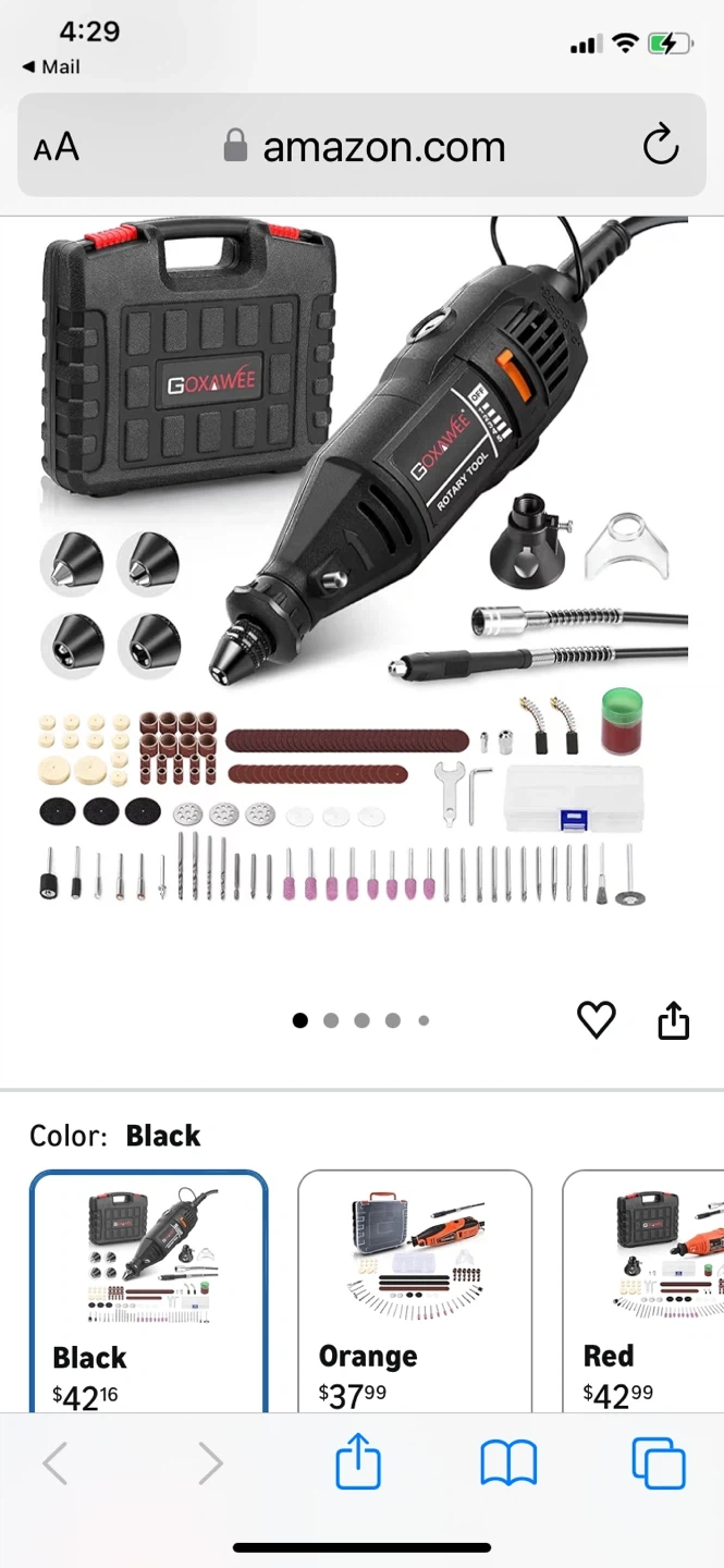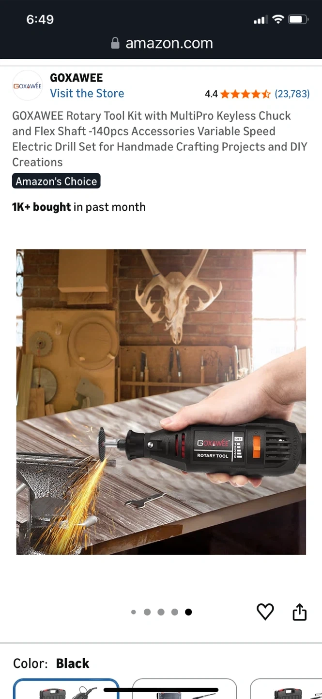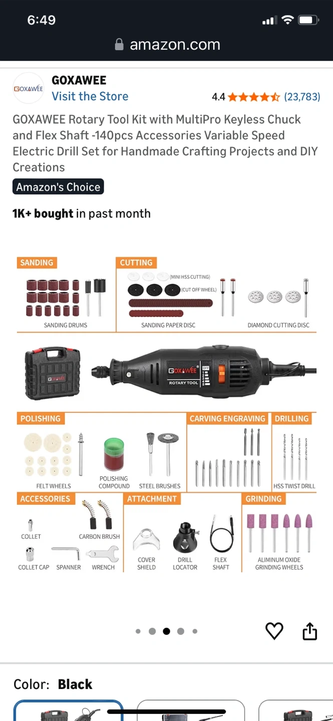 This GOXAWEE rotary tool kit includes a flex shaft and 140 accessories for various crafting projects. It features a multipro keyless chuck and variable speed control ranging from 8000-30000 RPM. Includes a durable carrying case for storage and transport.