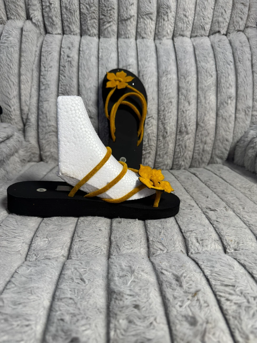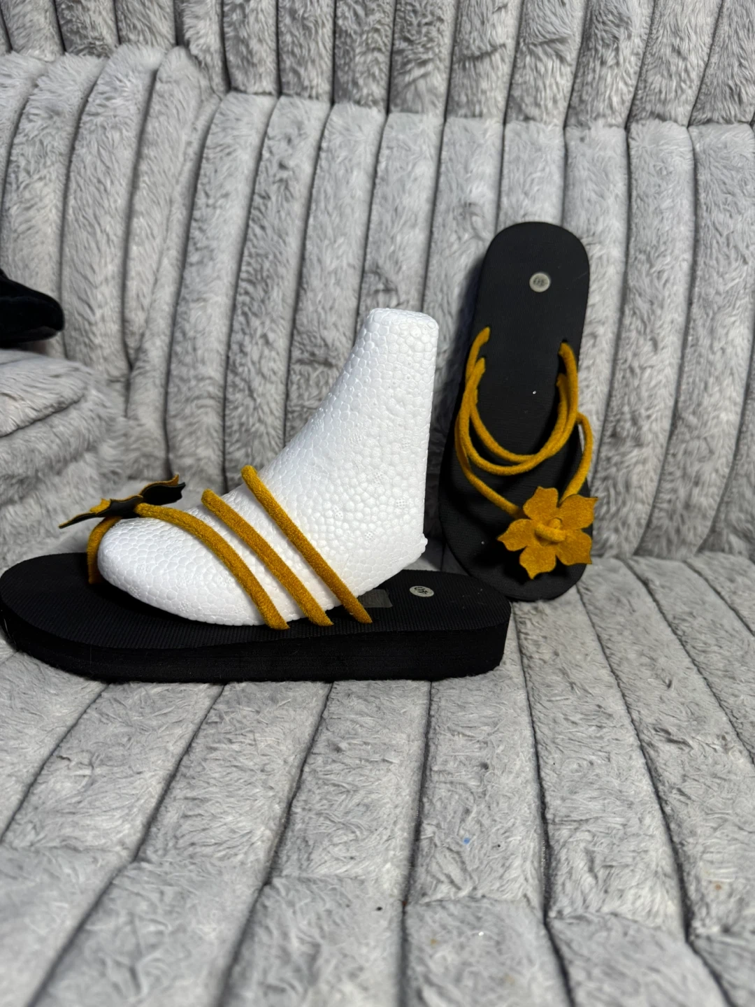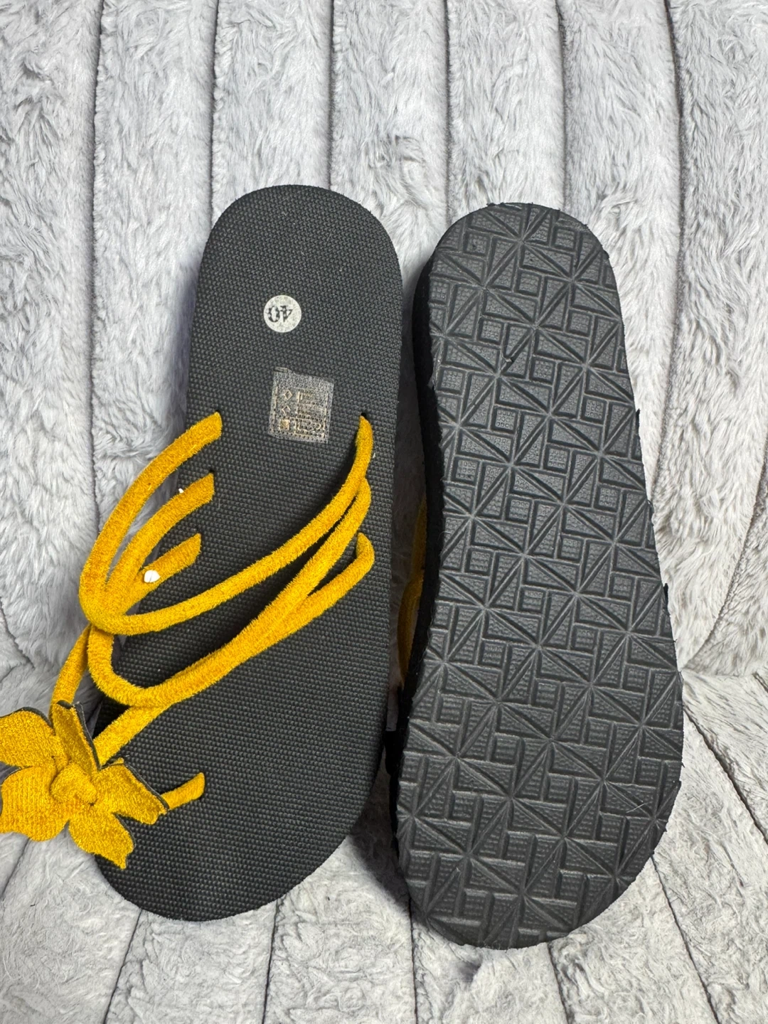 Black Flip Flops with Yellow Flower Straps - Size 40