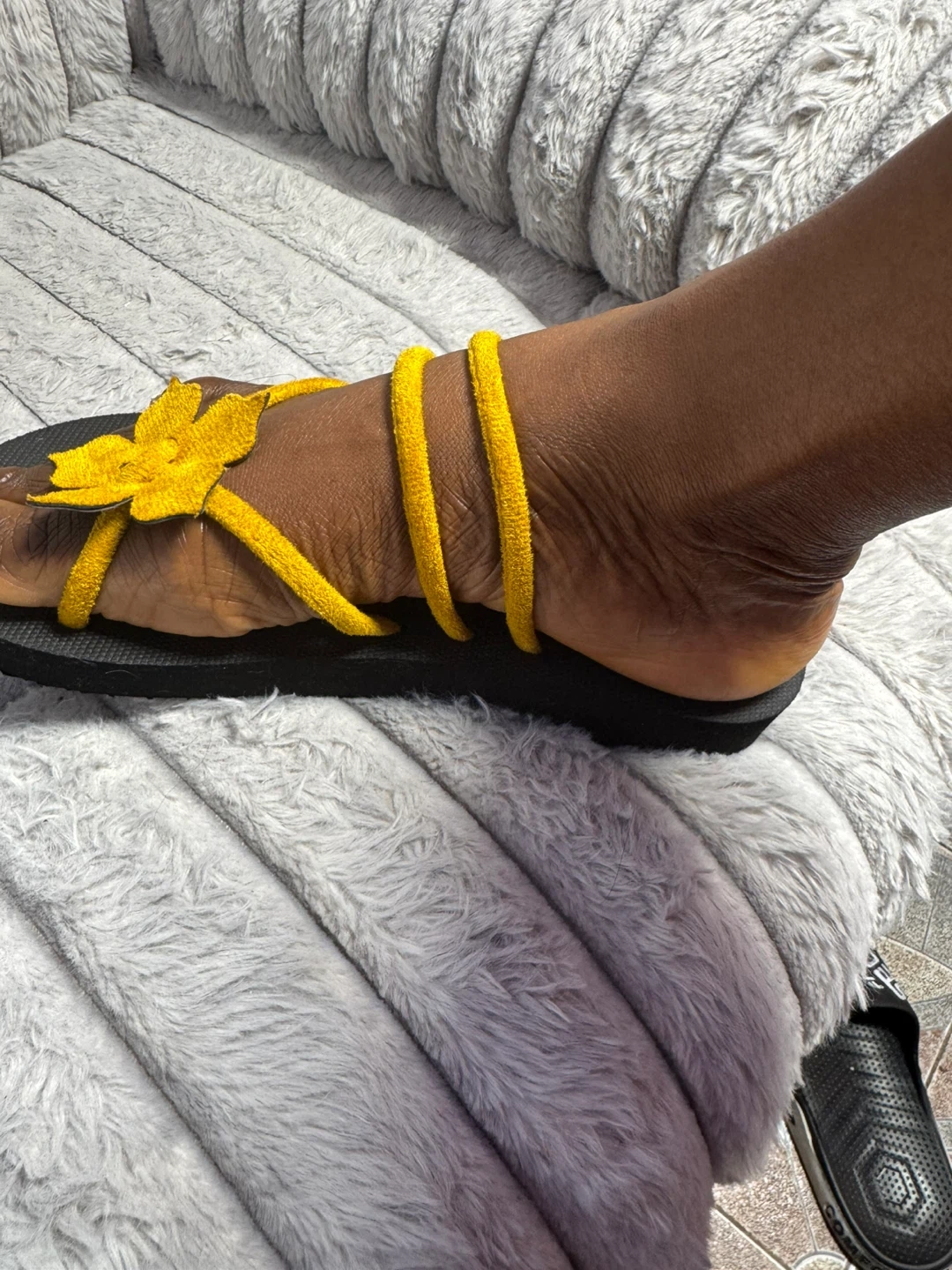 Black Flip Flops with Yellow Flower Straps - Size 40