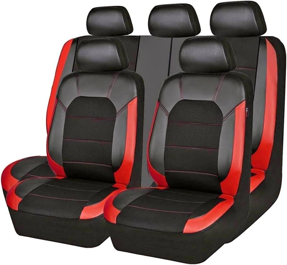 CAR PASS Leather and Mesh Universal Car Seat Covers, Airbag Compatible, for Sedans, Trucks, Suvs (Full Set, Black and Red)
