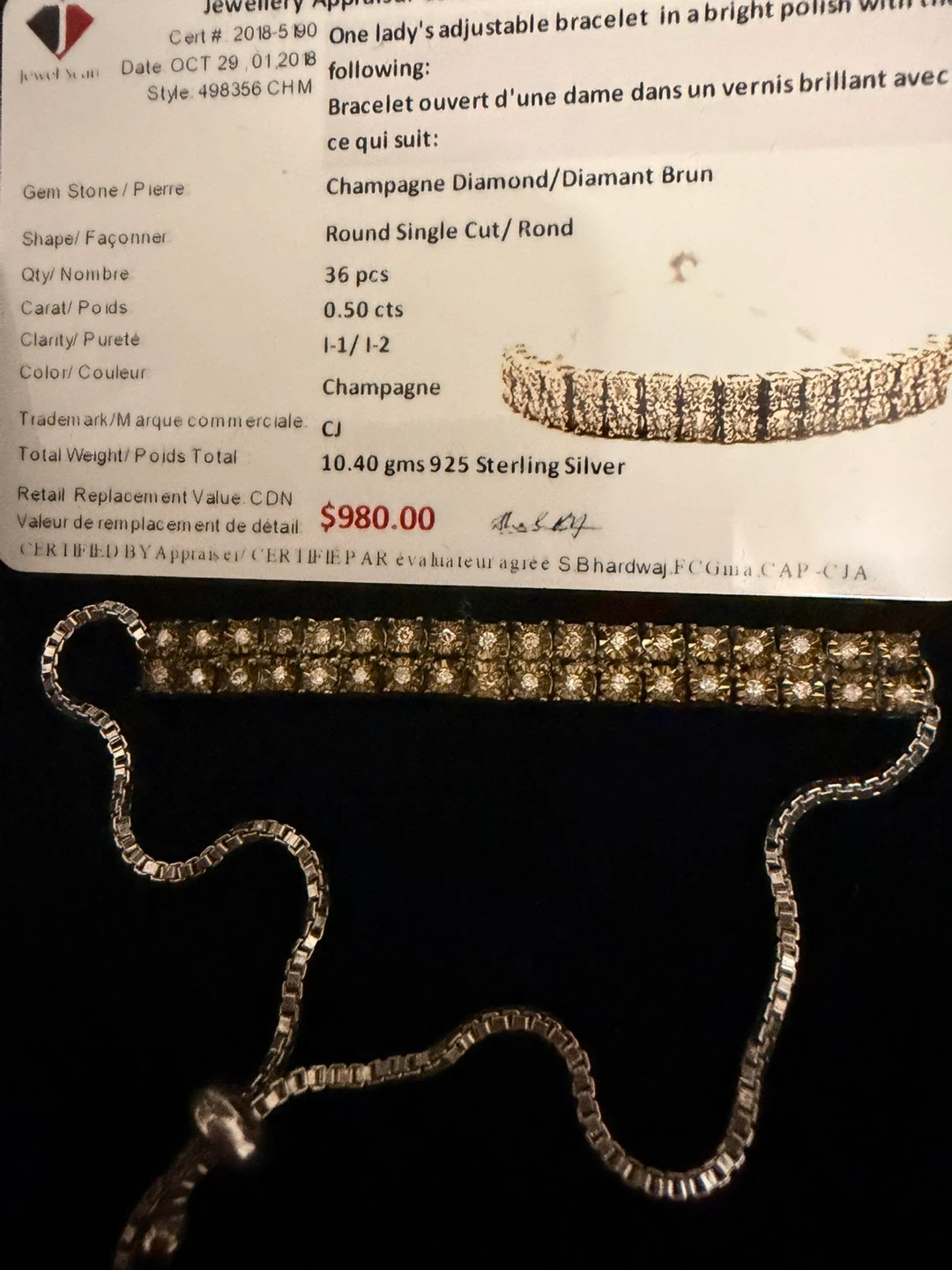 Sterling silver 925 Champagne Diamond Bracelet